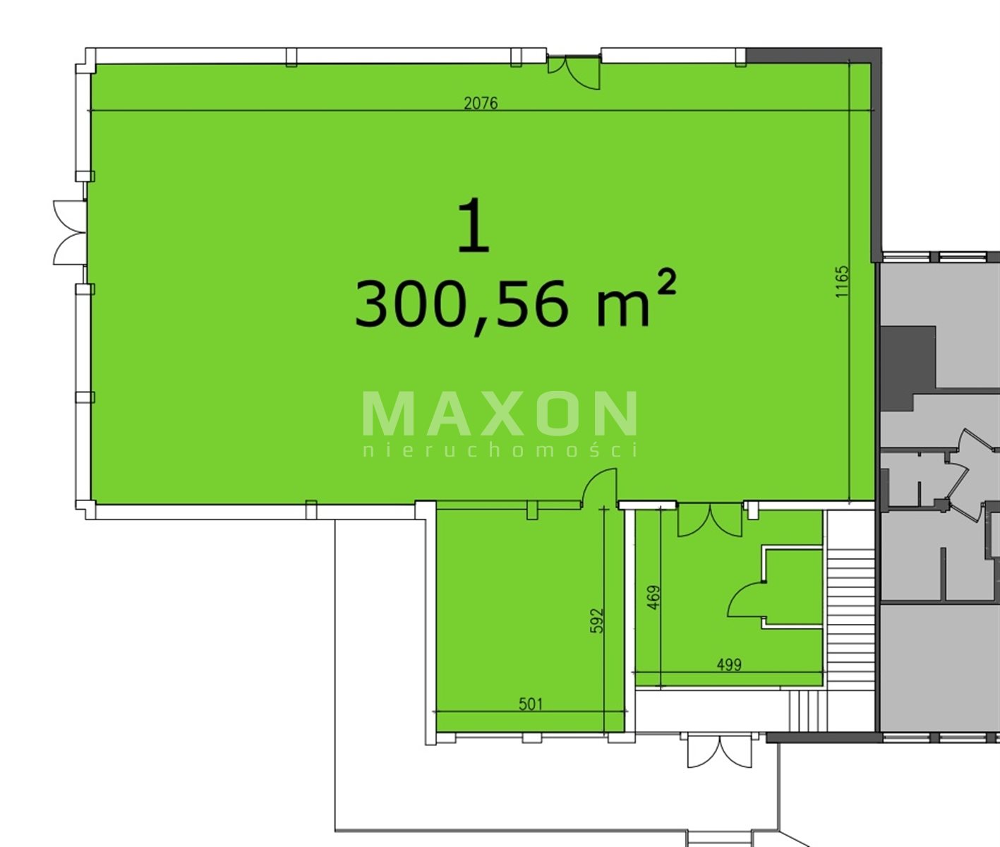 The space is in the shape of a regular rectangle, is well lit with daylight from the front. Height to ceiling 5m (to ceiling beams 4.2m).