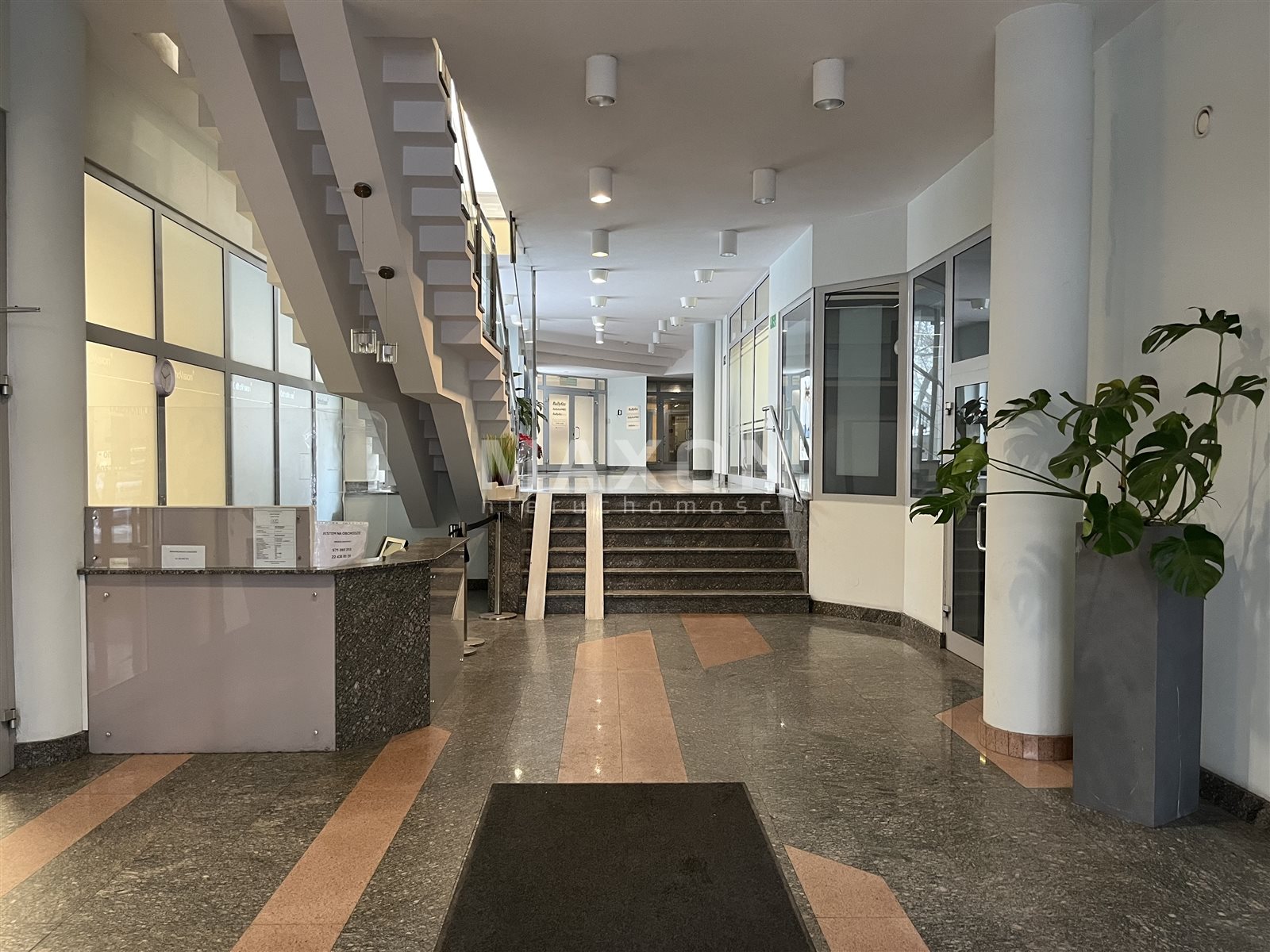 Office and service premises located on the ground floor in the lobby of the building. The space consists of one large room, a toilet, and a small back room. The premises also have a rear entrance where goods can be delivered. Large display windows and the entrance are located on the side of the entrance hall. Height 3.60 m, lighting, good standard of finish. Additional charges: electricity, water, heating. Administrative costs are included in the rent. Additional administrative rent of PLN 800.