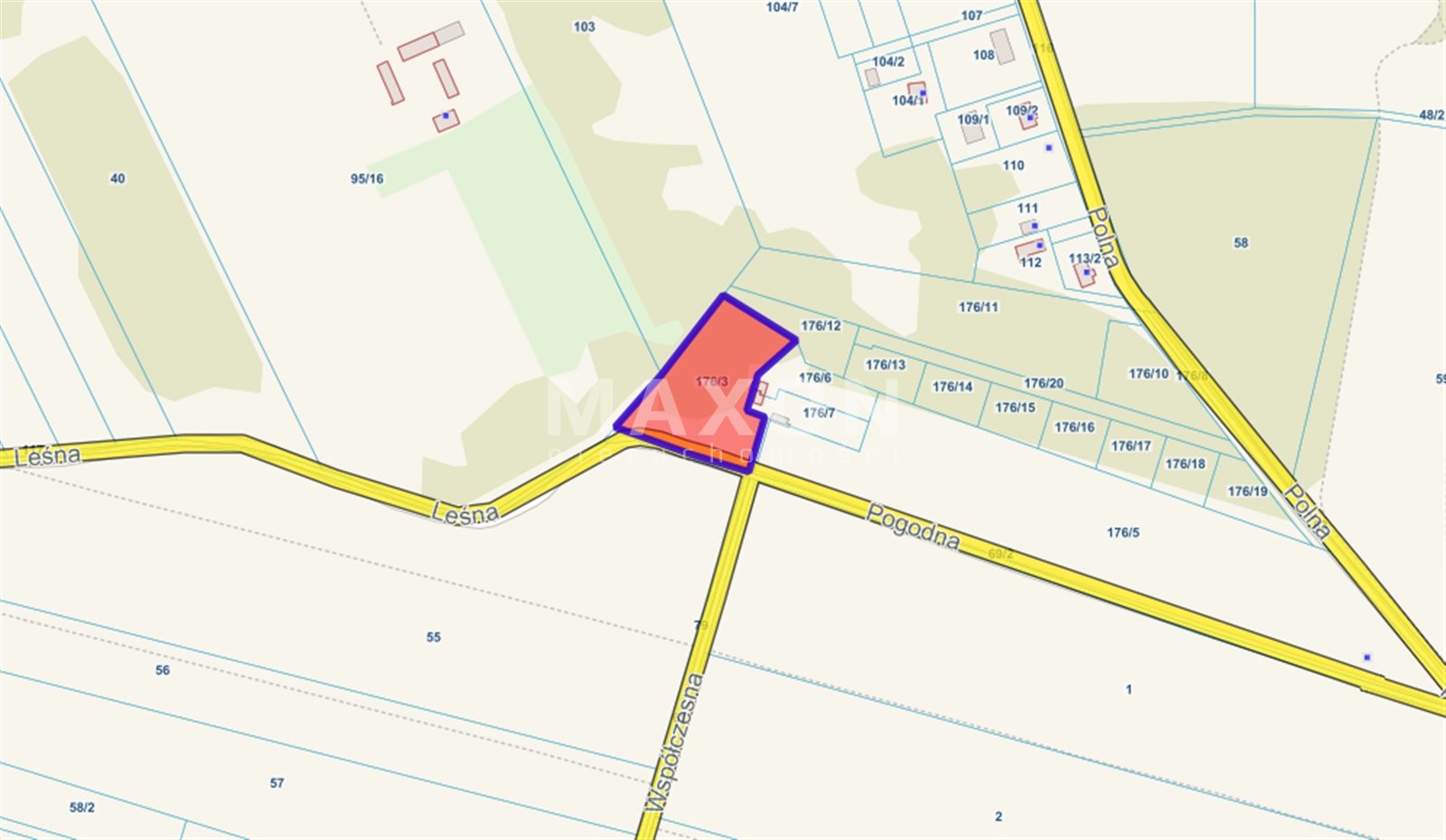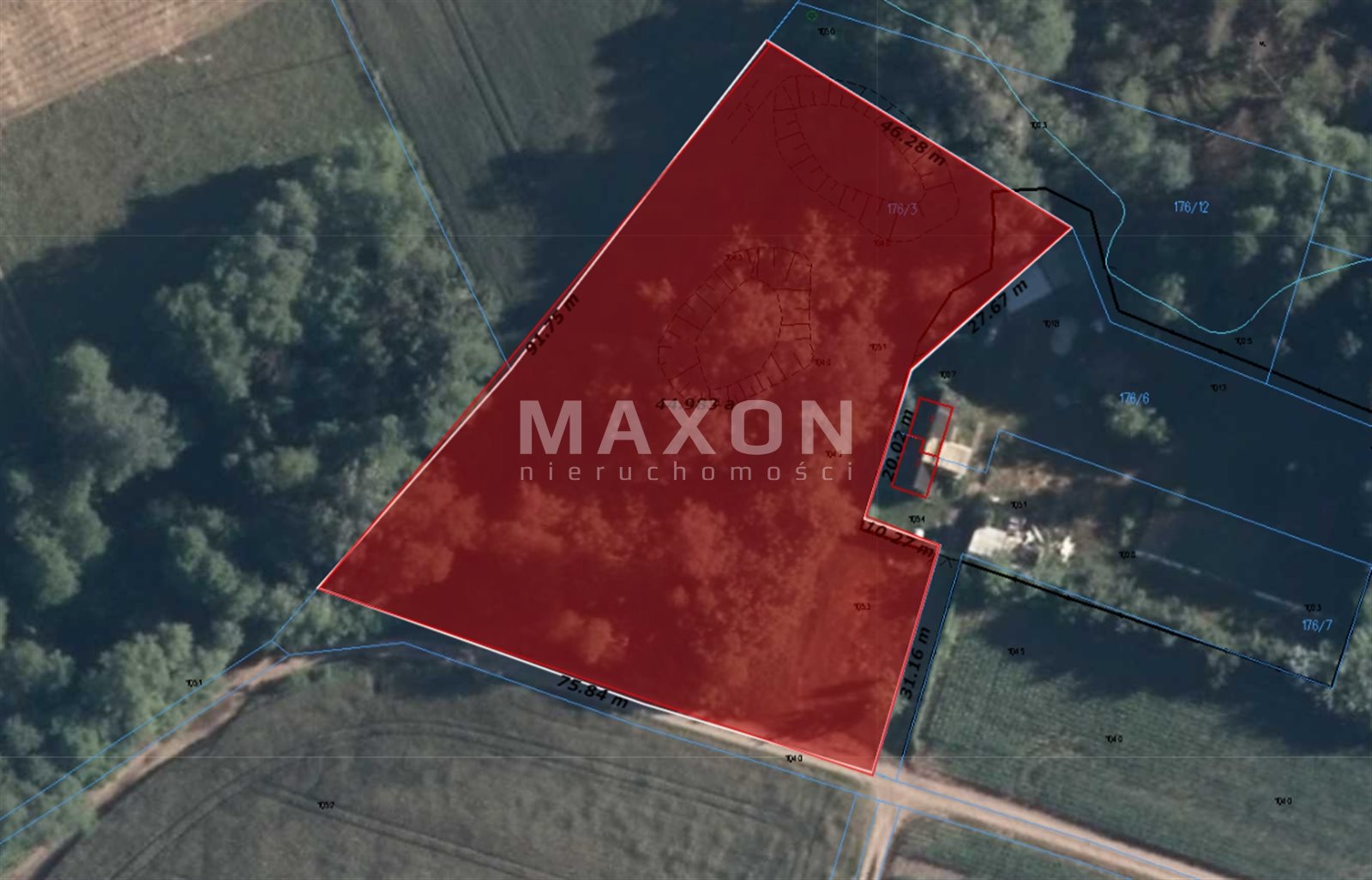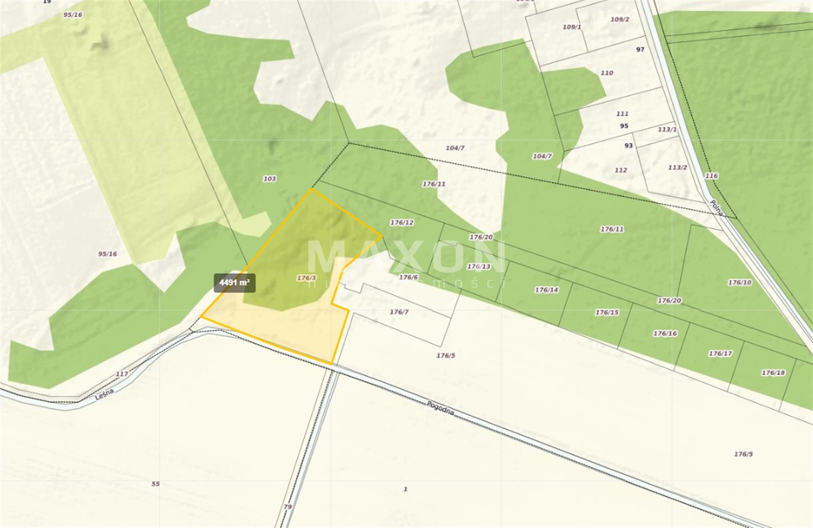 The plot of land with an area of 4,495 sq.m. is located in a quiet and green area, ideal for those seeking tranquility and contact with nature. There are few single-family houses in the neighborhood, which ensures intimacy and privacy. Access to the plot is via a paved road, guaranteeing convenient access to major thoroughfares.
