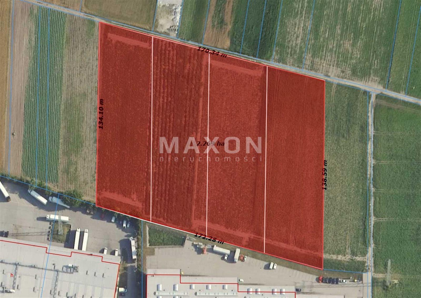 Macierzysz municipality of Ozarow Mazowiecki - Attractive plot for the construction of a warehouse with a total area of ca 2.27 hectares located directly on the northern border of the Agricultural and Food Exchange in Bronisze. The plot is located at a distance of about 2.0 km from the border of Warsaw and 2.0 km from the entrance to the S8 route - Warsaw's western bypass.