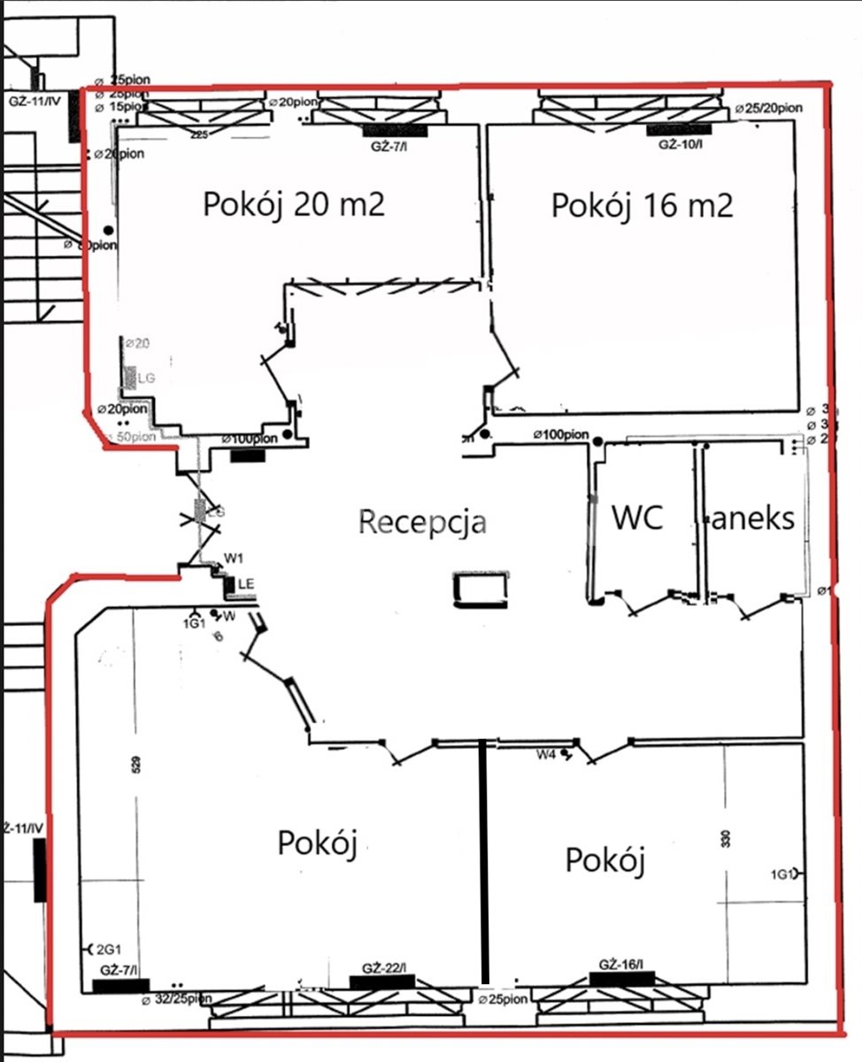- It consists of four rooms: a large reception area, a 41 sq m room; a 20 sq m room; a 16 sq m room