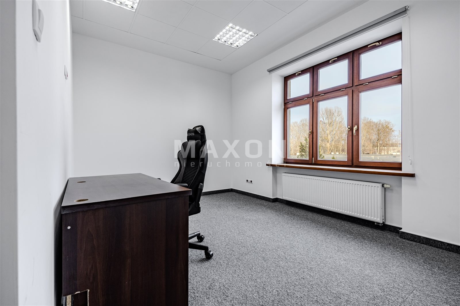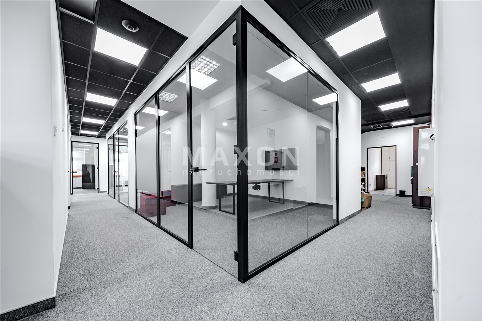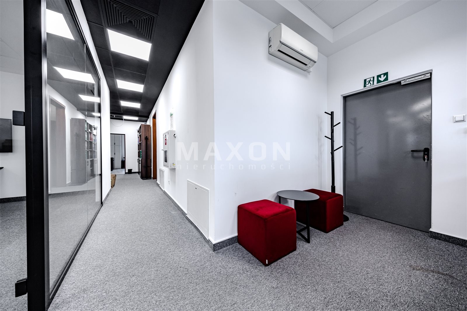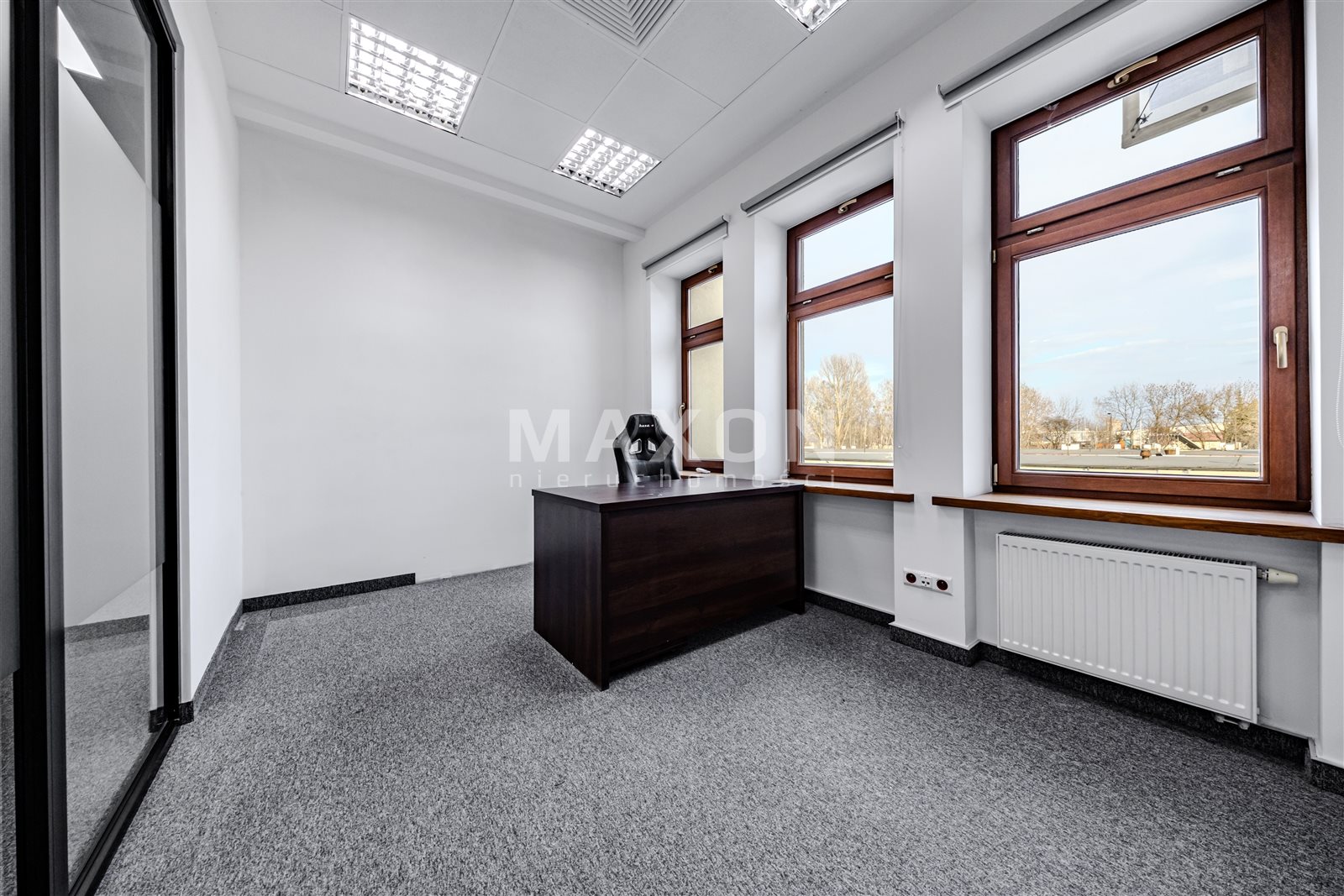 A standalone office space occupying the entire (first) floor of a charming, intimate office building. The space is nicely and modernly furnished—an office layout with many glass interior walls (photos taken before the partitioning!).Layout: 11 offices (including conference rooms),reception area,server room,kitchen,restrooms.The building features high-speed internet, an elevator, air conditioning, and a heat recovery system. Large, soundproof windows. Some furniture can be left behind. Operating costs: 15 PLN/sq. ft. In addition, there are electricity costs (metered) and heating. Fenced, secure premises. Parking spaces included in the rent! Excellent transport links; next to the exit to the ring road (Salomea interchange), good access to the city center, Chopin Airport, Ursus, and Mokotów...