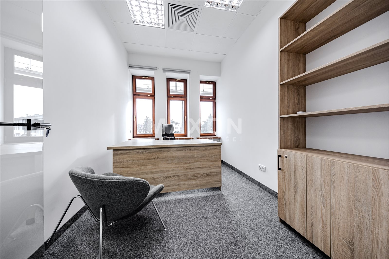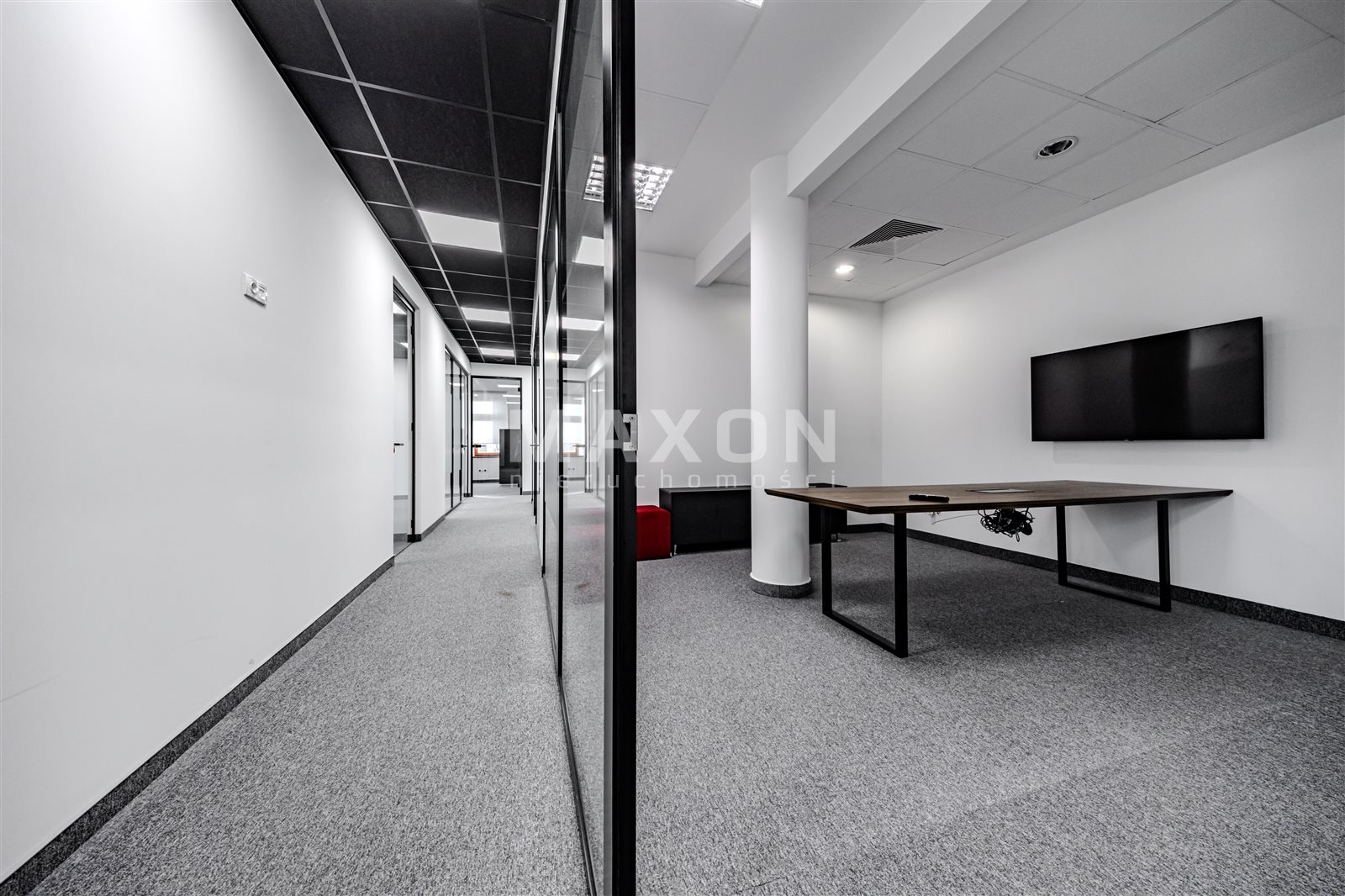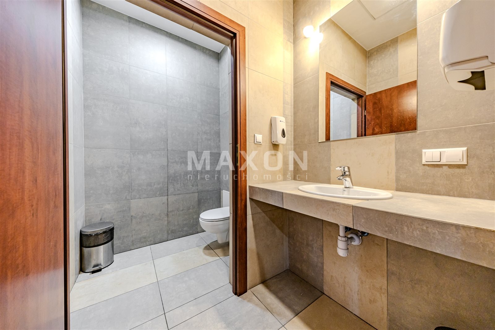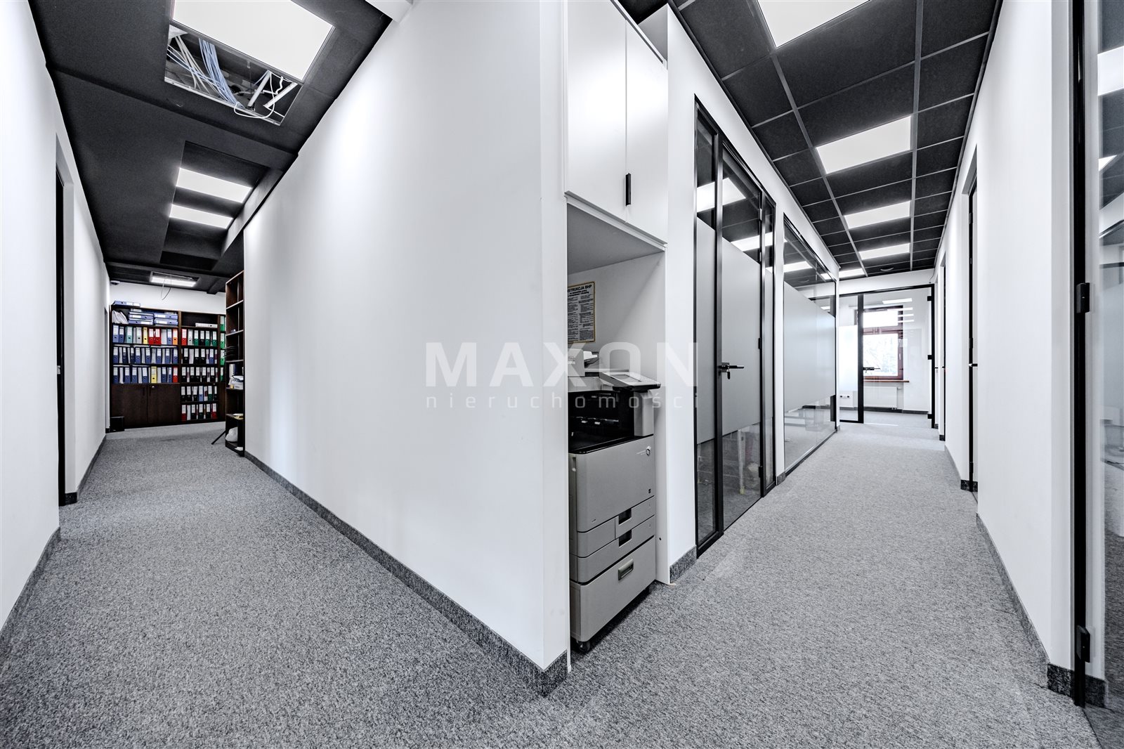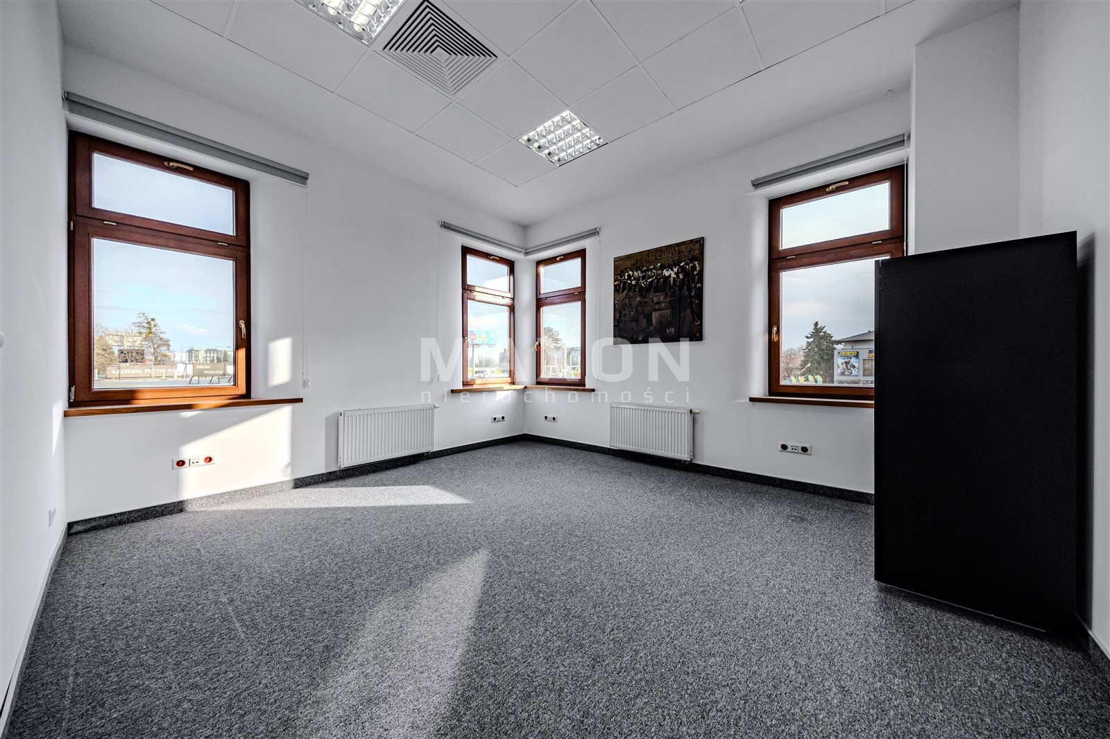 A standalone office space occupying the entire (first) floor of a charming, intimate office building. The space is nicely and modernly furnished—an office layout with many glass interior walls (photos taken before the partitioning!).Layout: 11 offices (including conference rooms),reception area,server room,kitchen,restrooms.The building features high-speed internet, an elevator, air conditioning, and a heat recovery system. Large, soundproof windows. Some furniture can be left behind. Operating costs: 15 PLN/sq. ft. In addition, there are electricity costs (metered) and heating. Fenced, secure premises. Parking spaces included in the rent! Excellent transport links; next to the exit to the ring road (Salomea interchange), good access to the city center, Chopin Airport, Ursus, and Mokotów...