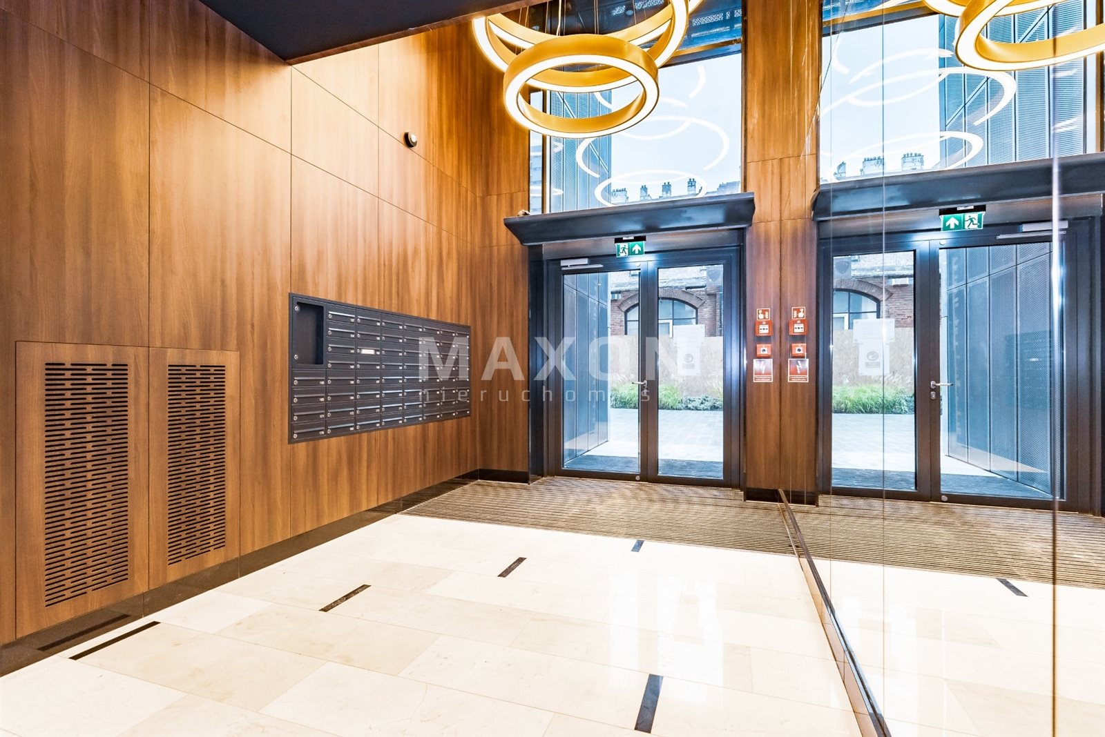 The Mennica Residence is an elegant apartment building located in the Wola district, nestled among new office buildings.The complex stands out for its modern architecture. The ground-floor retail spaces house restaurants and service outlets. The building’s common areas offer tenants a business, fitness, and wellness zone: a conference room for 10 people with a kitchenette and restroom, a fully equipped fitness room, a dry and wet sauna, and a relaxation terrace with lounge chairs and tables.