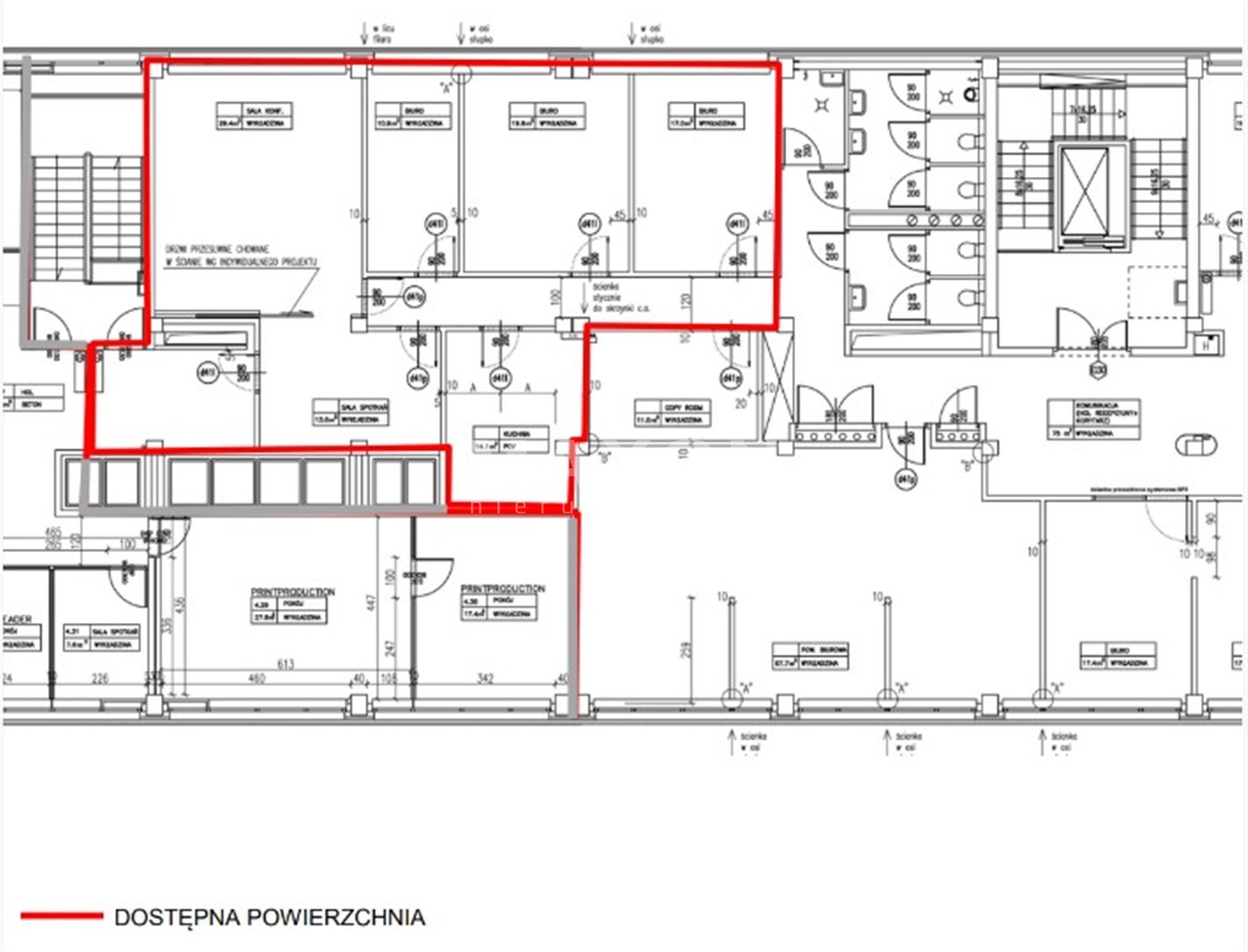 For lease 136 sqm office space located on the fourth floor of an office building on Cybernetyki Street.