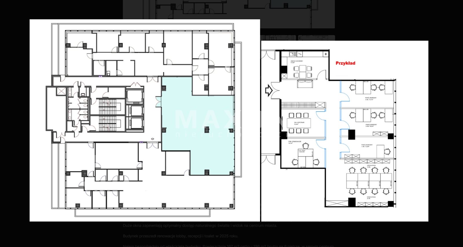 I invite you to view the available spaces in the building.