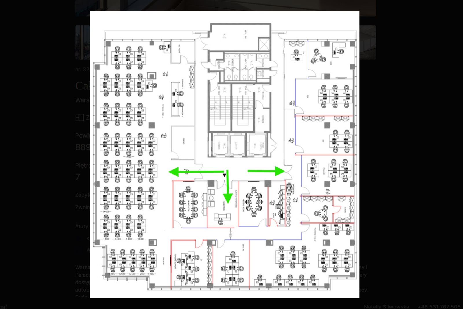 An office on the 7th floor in downtown Warsaw—stunning views of the city center.