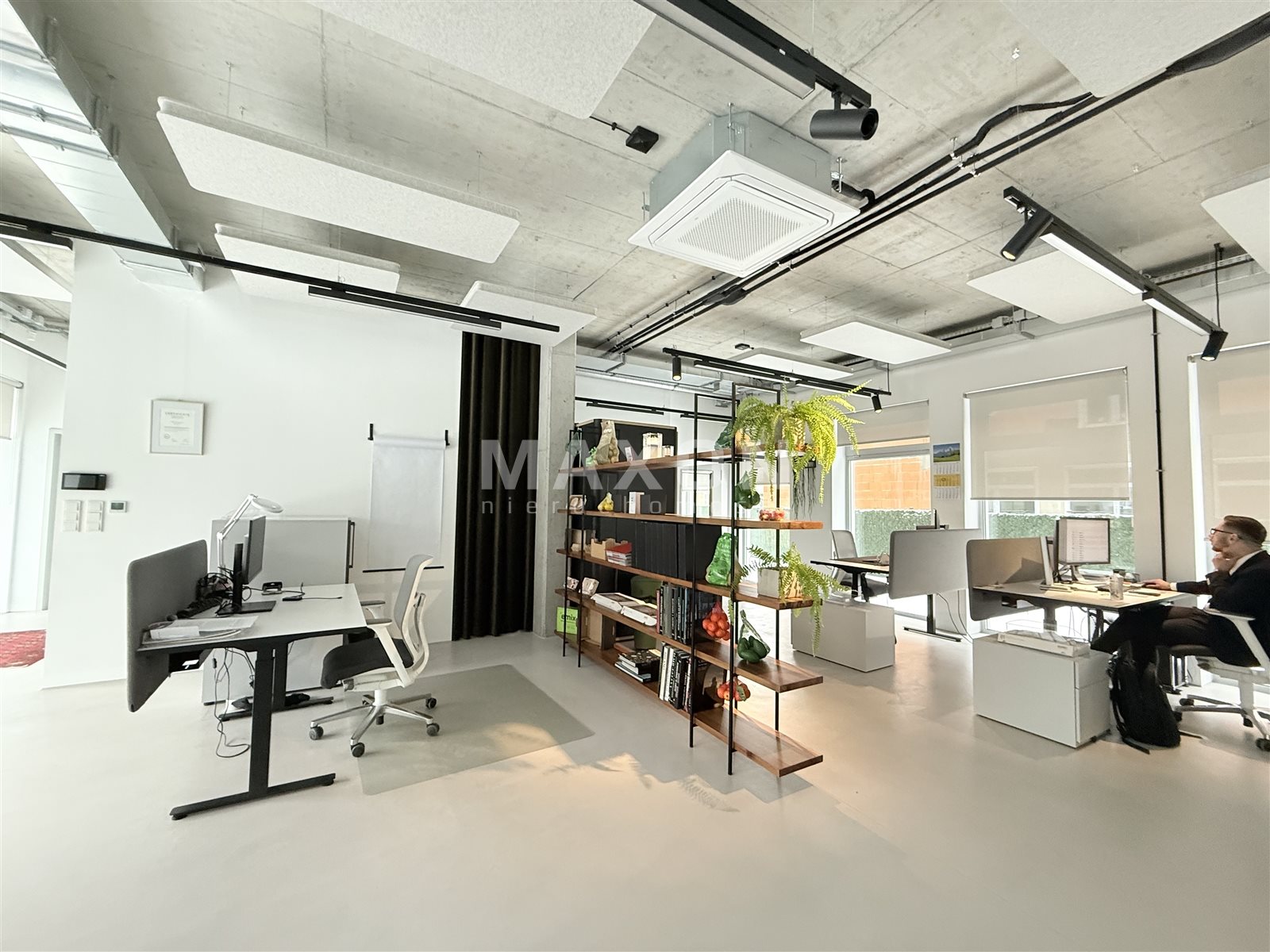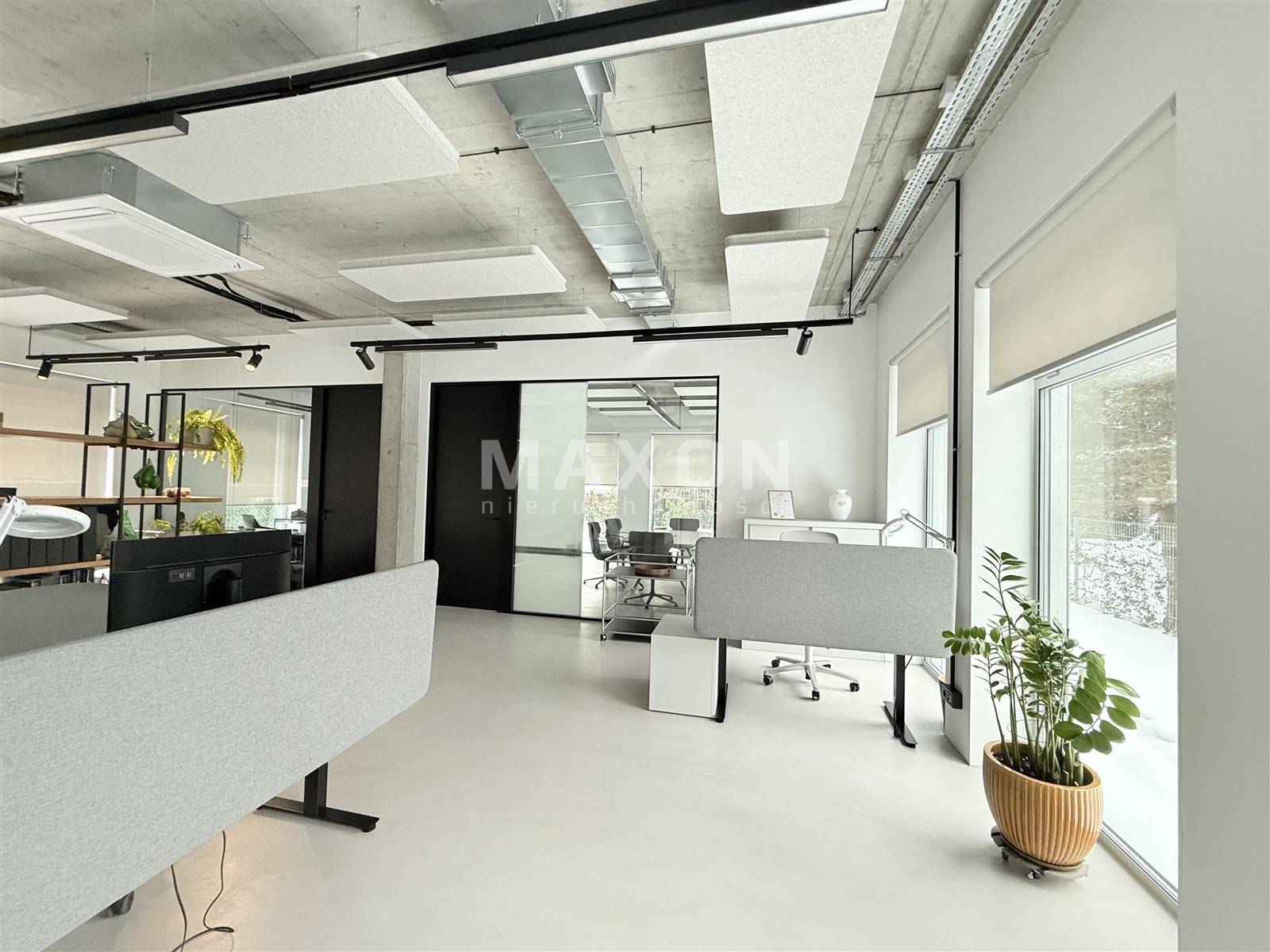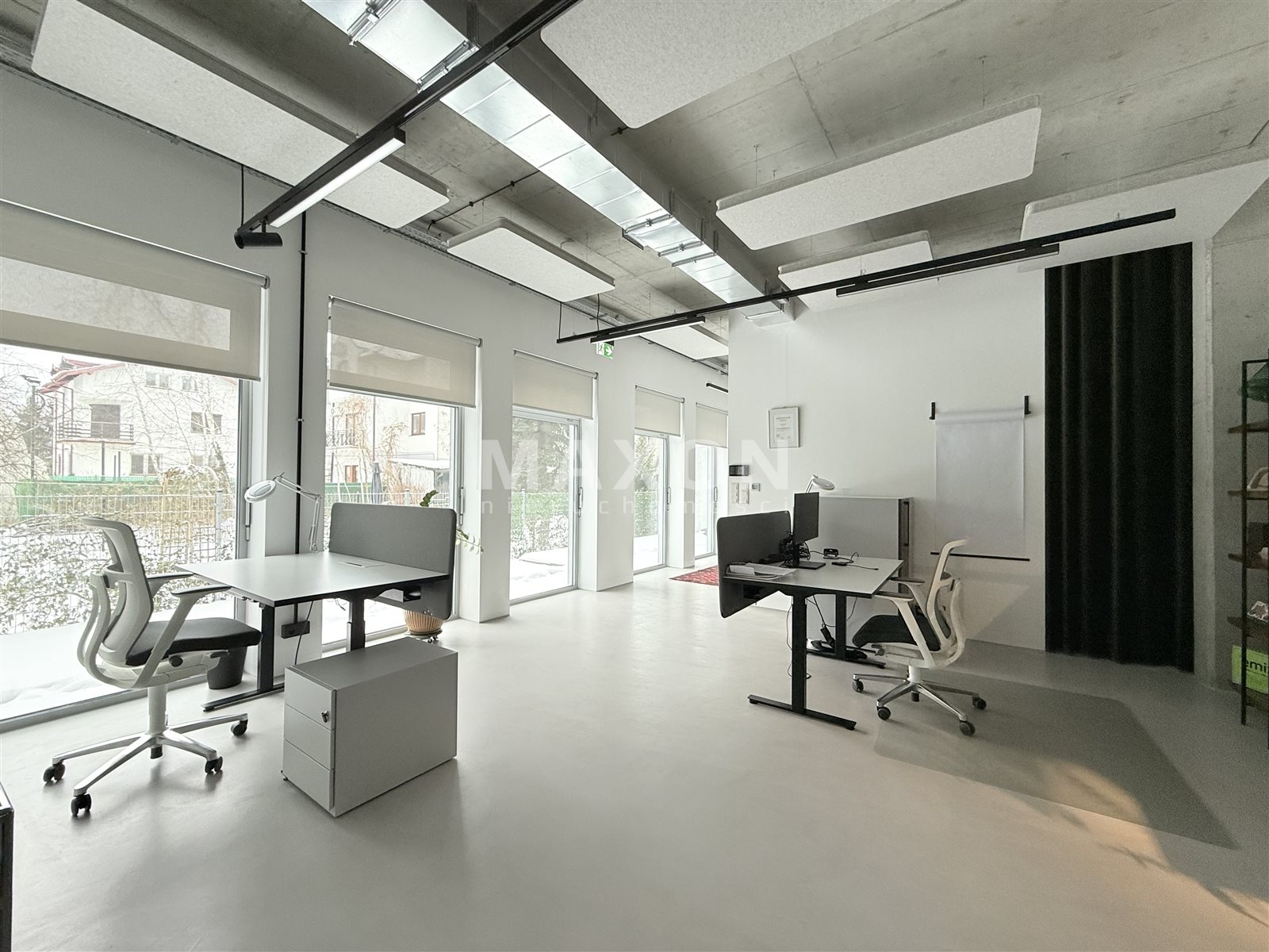 Ceiling height: 3.40 m. Beautiful floor-to-ceiling windows. Stunning sliding windows opening onto the terrace, connecting the office with the outdoor space during the summer.