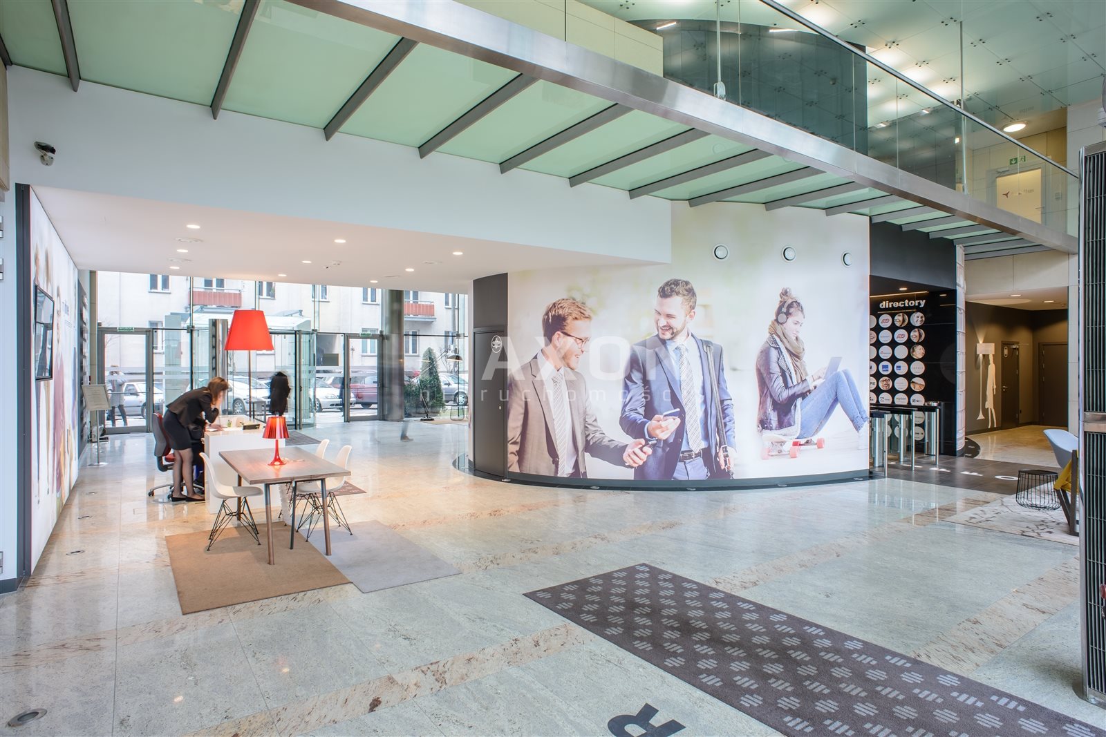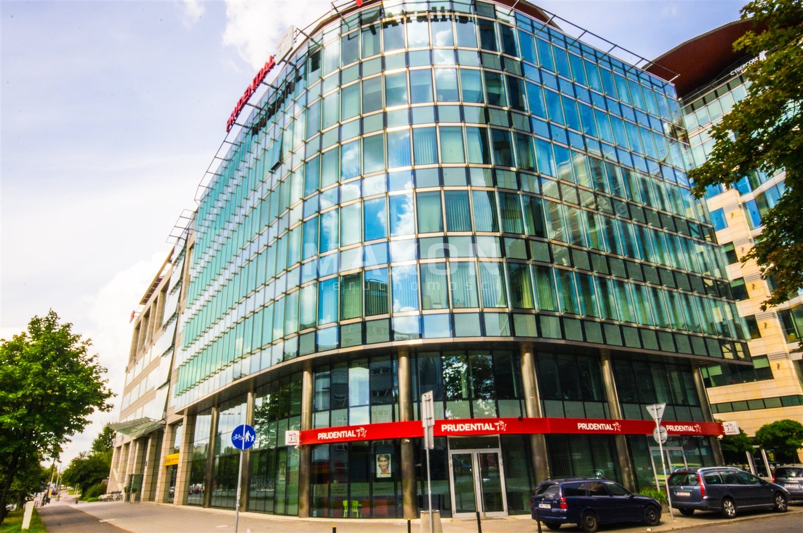 A class B+ office building located in one of the fastest growing districts of Warsaw, right next to a metro station on line II. The office space has been designed to allow for individual arrangement of the area and creation of friendly workplaces for each tenant. The building has a canteen, kiosk, and ATM. Suspended ceilings, air conditioning, carpeting, smoke detectors, raised floors.Location