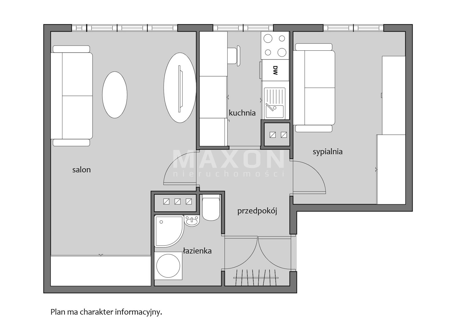 The apartment consists of a spacious, bright living room, which is an ideal place to relax after work, a comfortable bedroom ensuring peace and privacy, a separate and bright kitchen fully equipped with modern appliances, an aesthetic bathroom with a toilet, and a functional hall with storage space.