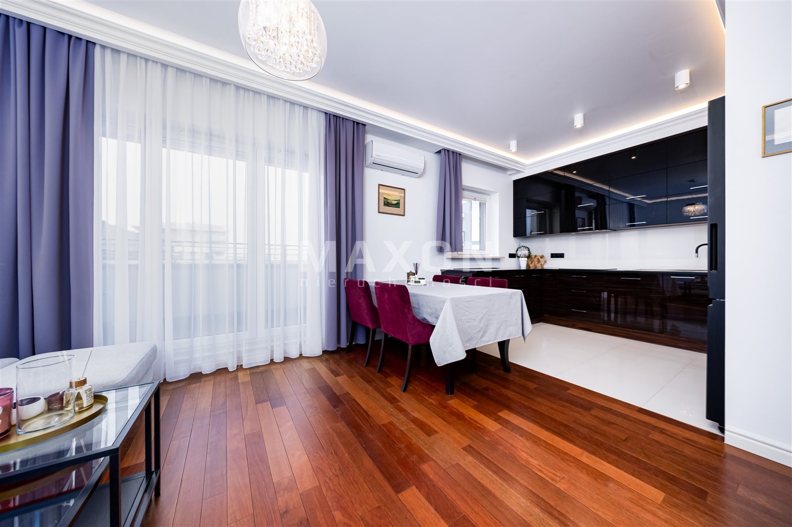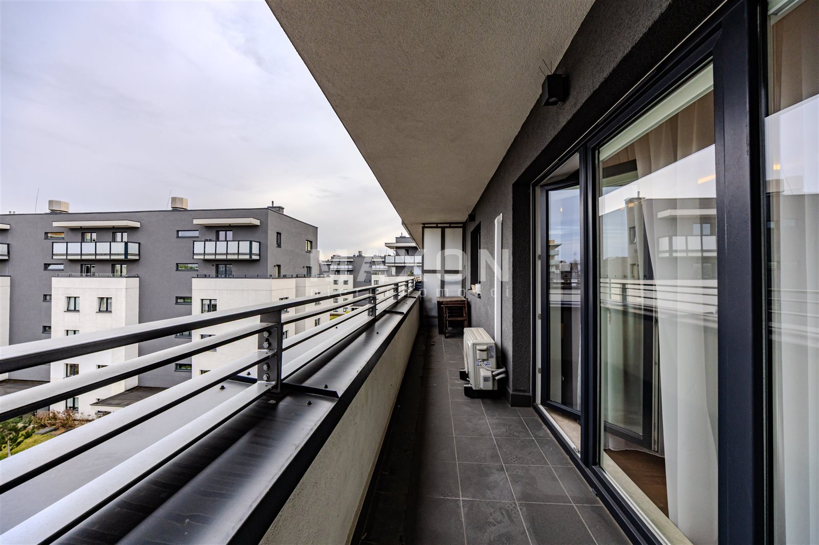 For rent: a 3-room apartment (including one "open" room connected to the bedroom) with an area of 63,3 sq. m. in Bielany—near the border with Żoliborz at M. Niedzielskiego "Żywiciela" 2c Street. Located on the 4th (top floor) with an elevator in a low-rise building from 2014. The apartment is finished to a high standard. Two balconies offer the opportunity to relax at any time of day. The complex consists of low-rise buildings; it is gated and guarded, ensuring safety, peace and quiet.