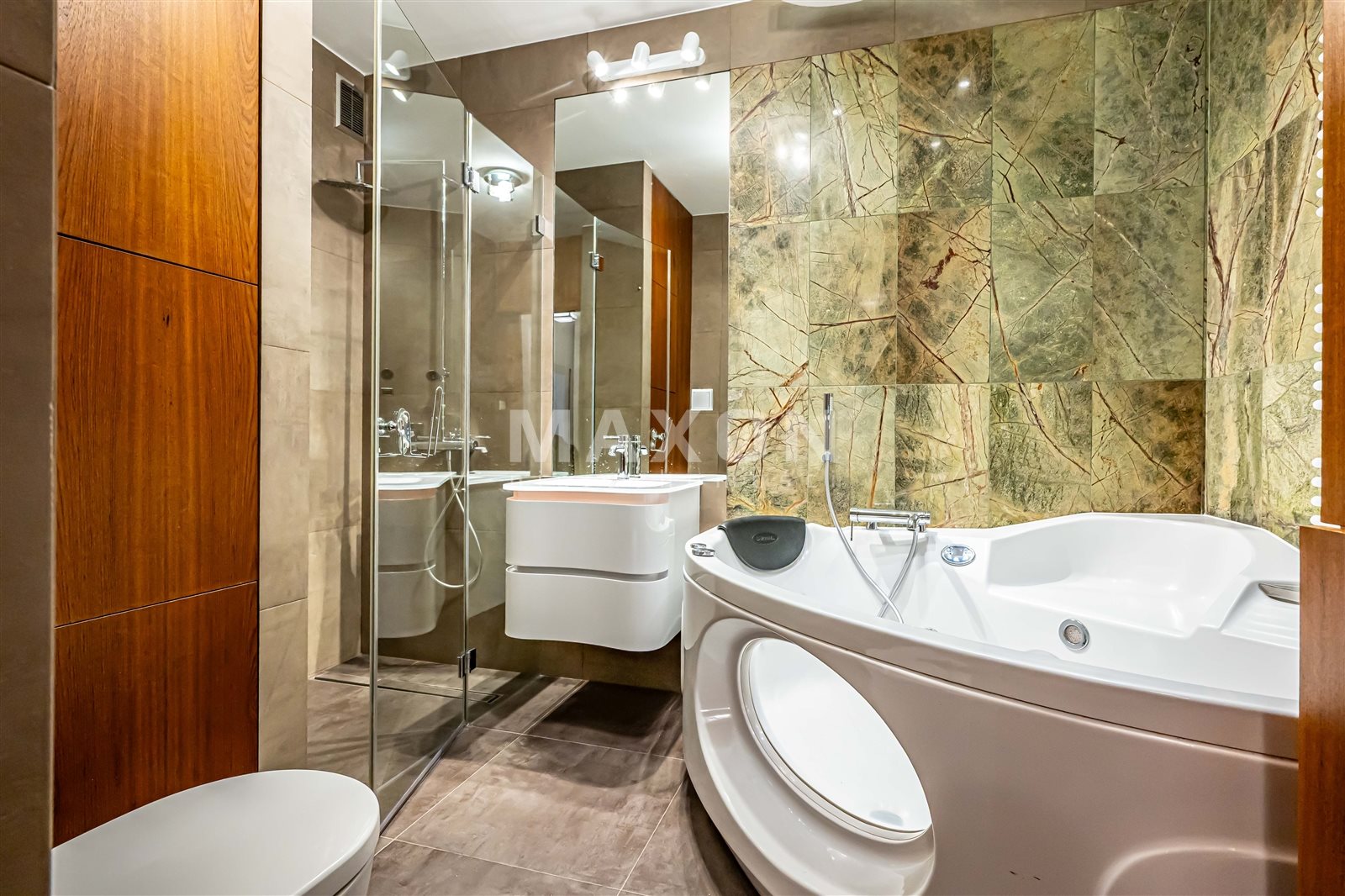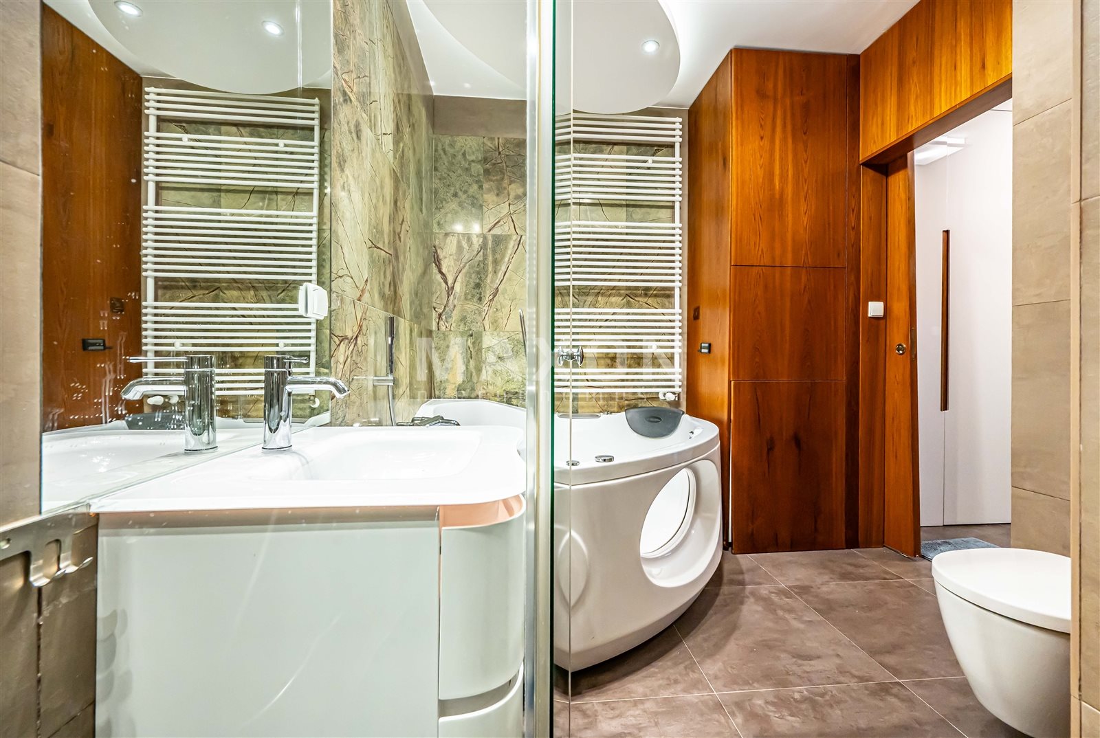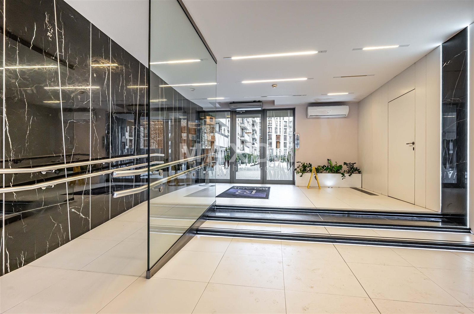 The apartment is located on the 2nd floor of a modern apartment building. The building is monitored and guarded 24/7, has a reception, elevator, and underground garage.