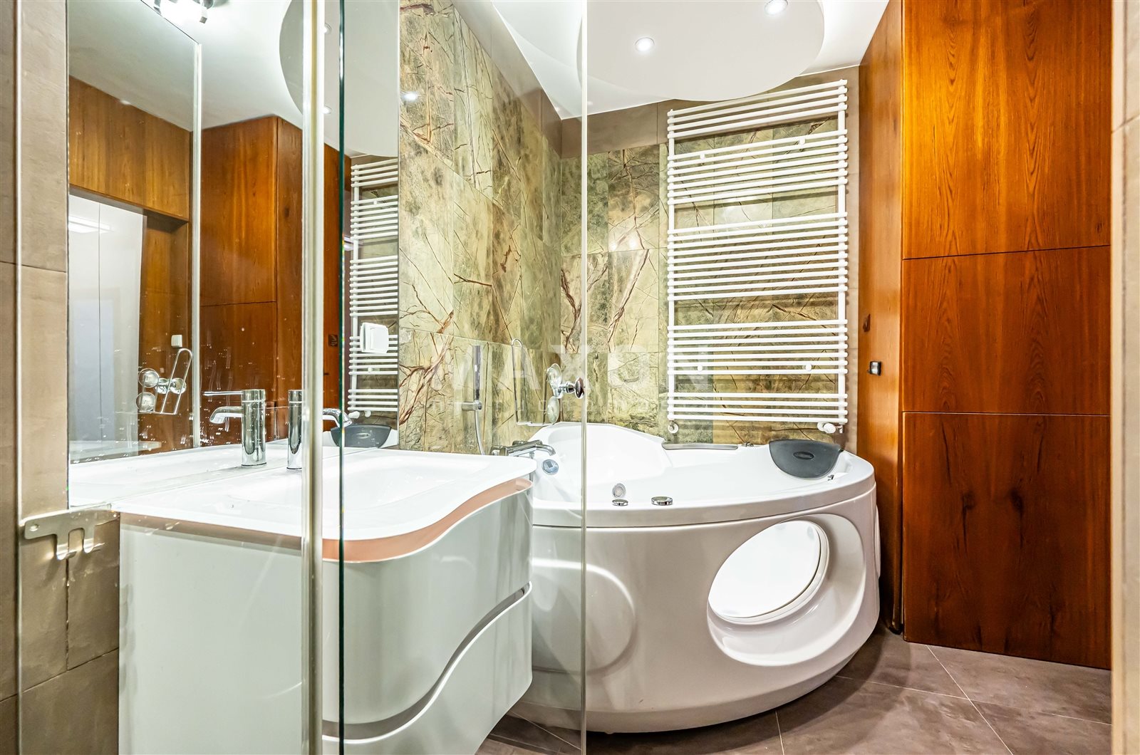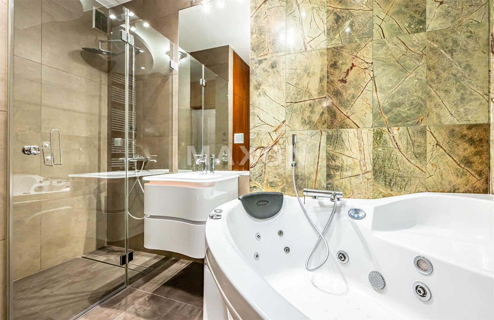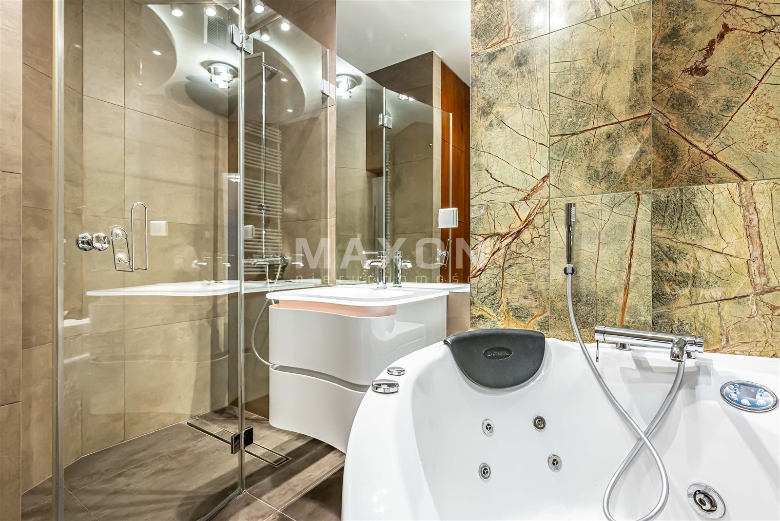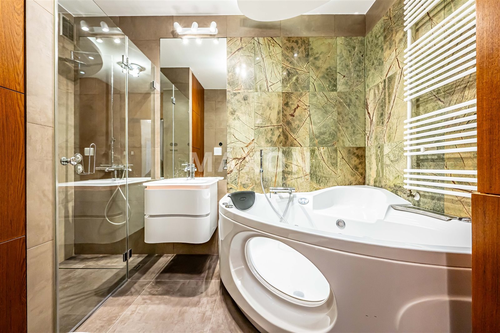 The apartment is located on the 2nd floor of a modern apartment building. The building is monitored and guarded 24/7, has a reception, elevator, and underground garage.