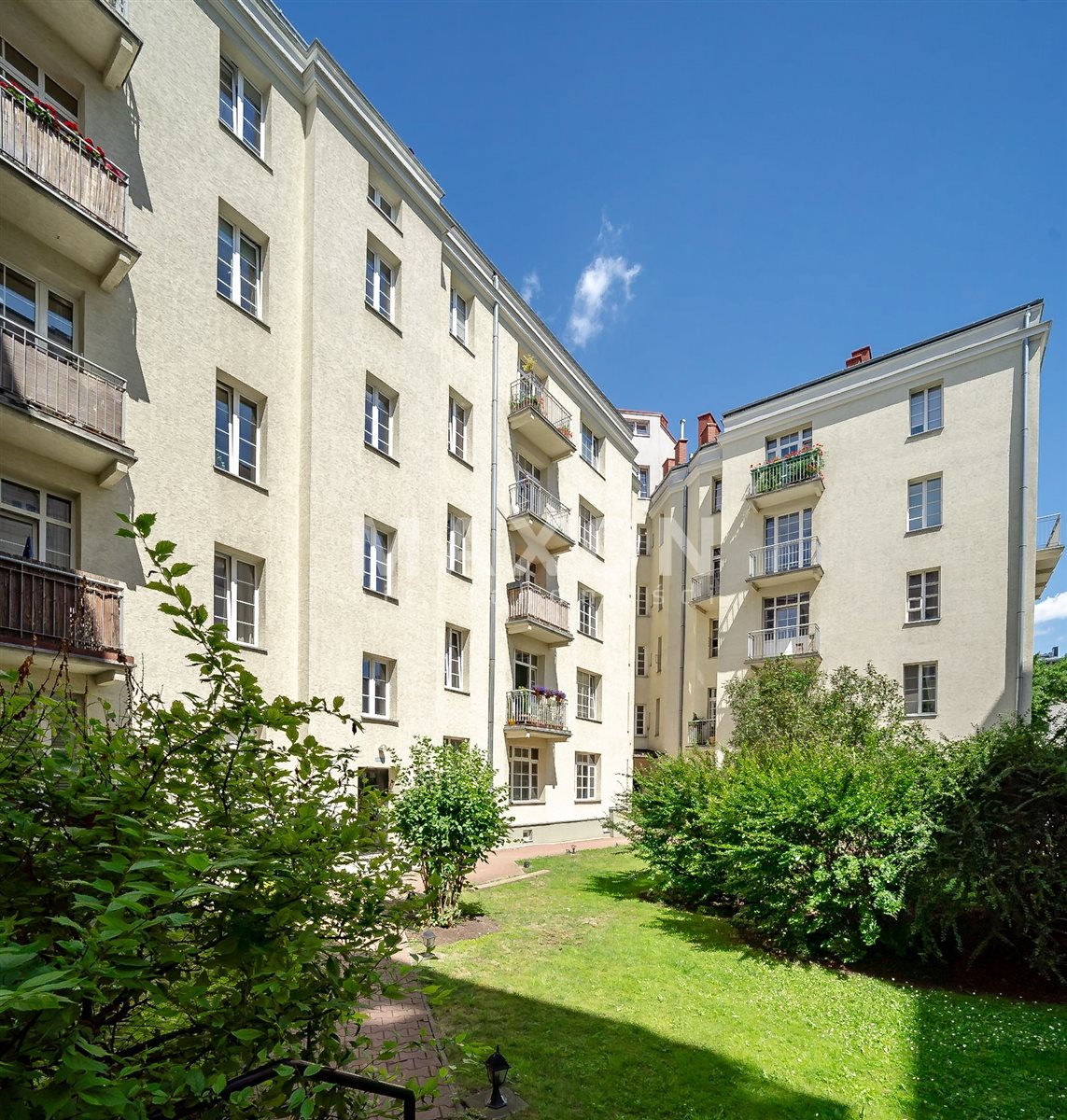 The apartment is quiet (3rd line of buildings from the street), bright and sunny, thanks to numerous large windows and southern exposure, overlooking a well-kept green courtyard. The entire property is fenced.