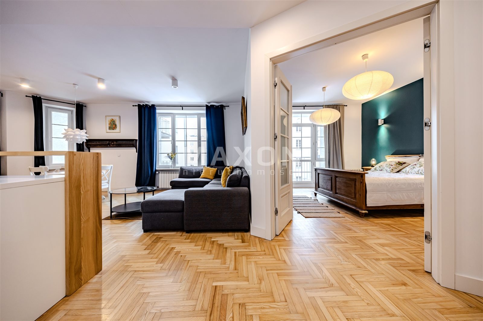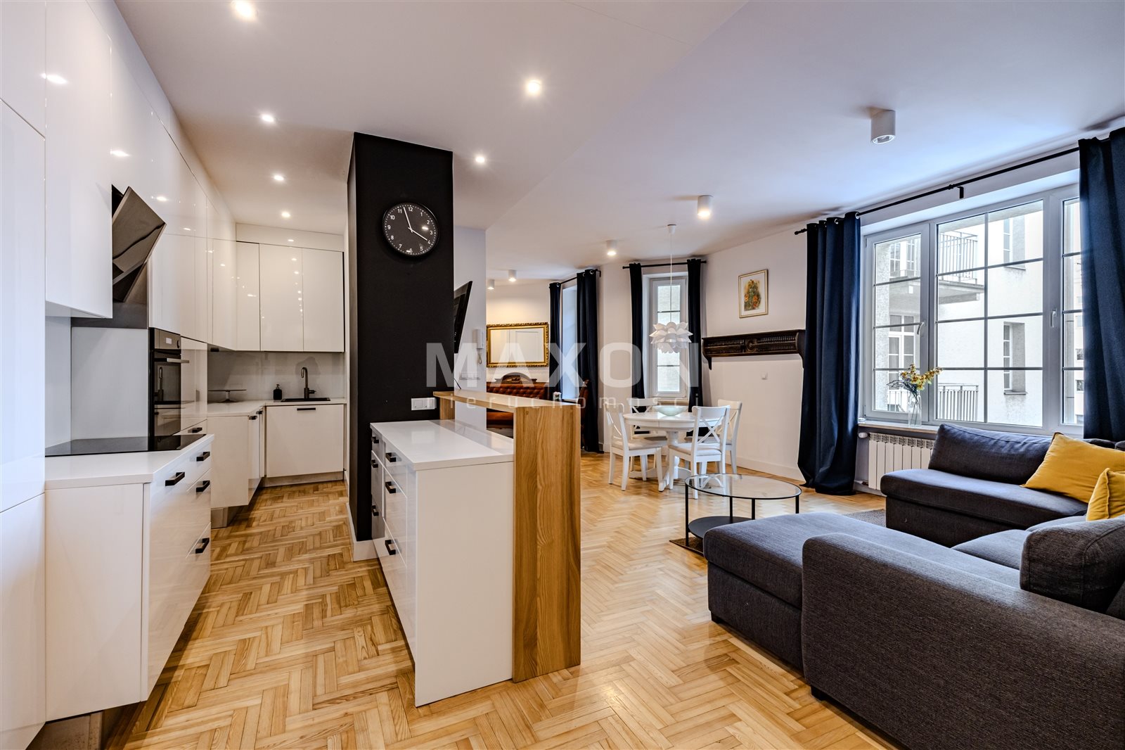 An elegant 95 m² apartment located on the second floor of a beautifully renovated 1920s building in the heart of Górny Mokotów, on Madalińskiego Street, between Niepodległości Avenue and Kazimierzowska Street.