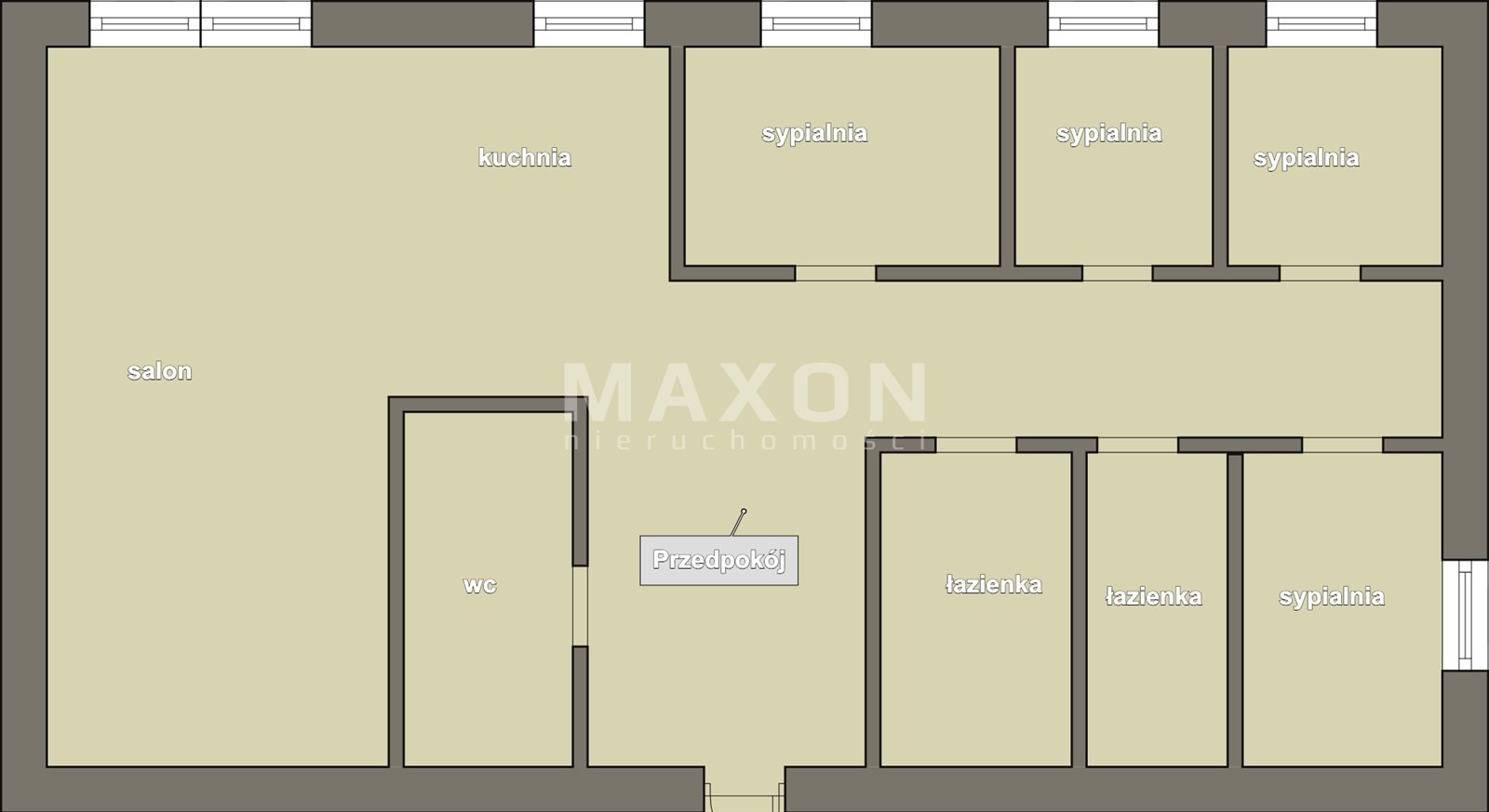 The apartment has an area of 132 sqm and consists of a living room with a large kitchenette, 4 bedrooms - including one with its own bathroom, a separate bathroom and a toilet in the hall.