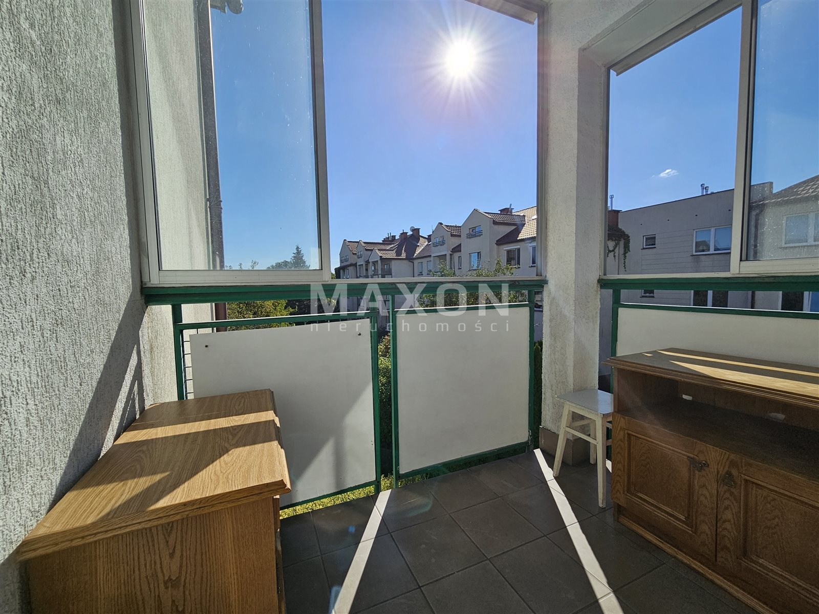 From the living room exit to the balcony (2.5 m²) overlooking the green patio - the perfect place for morning coffee.