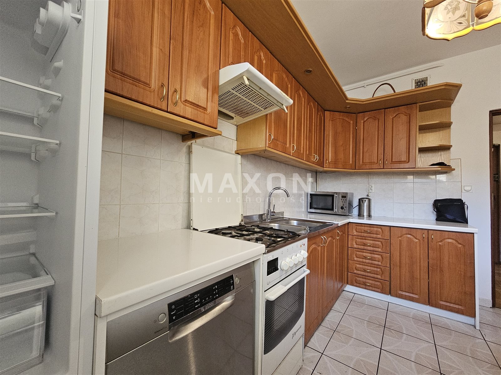 The kitchen is equipped with dishwasher, washing machine, refrigerator and microwave.