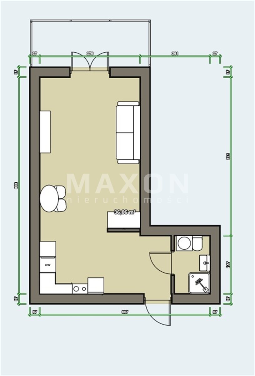- a bright living room with a modern kitchenette (21 sq m)