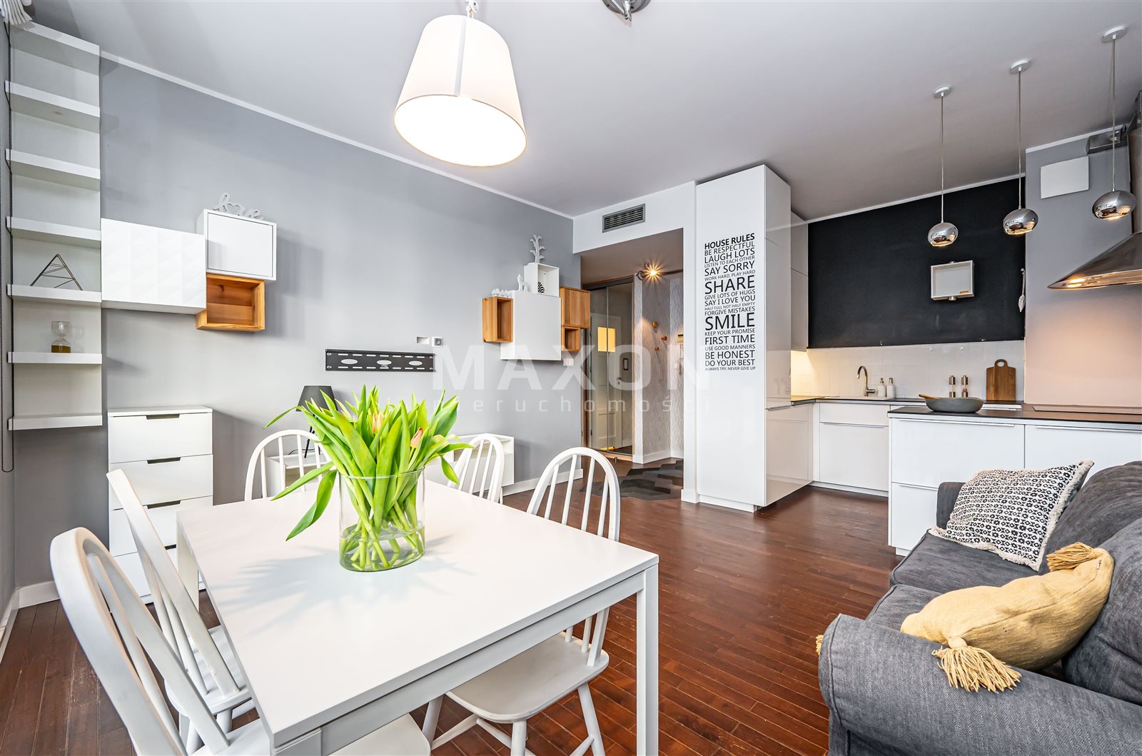 - Plenty of wardrobes for storage.Rental price: PLN 3,400 per month. Parking space in the underground garage available for an additional PLN 400 per month.