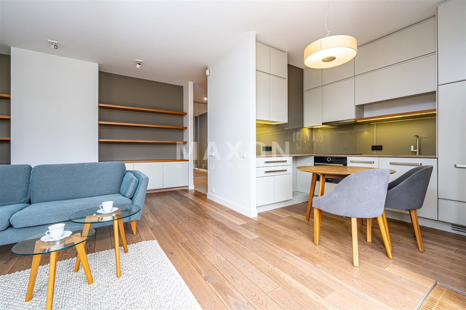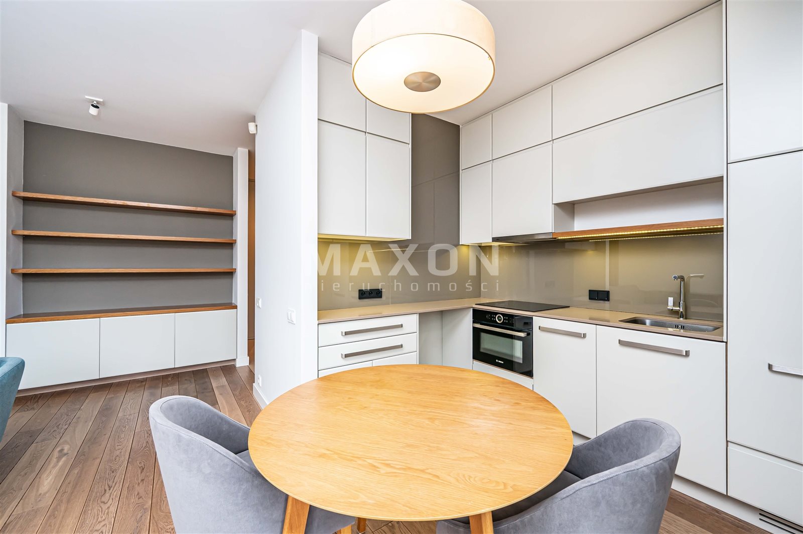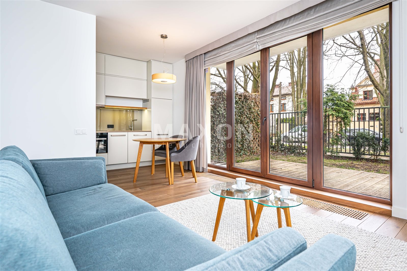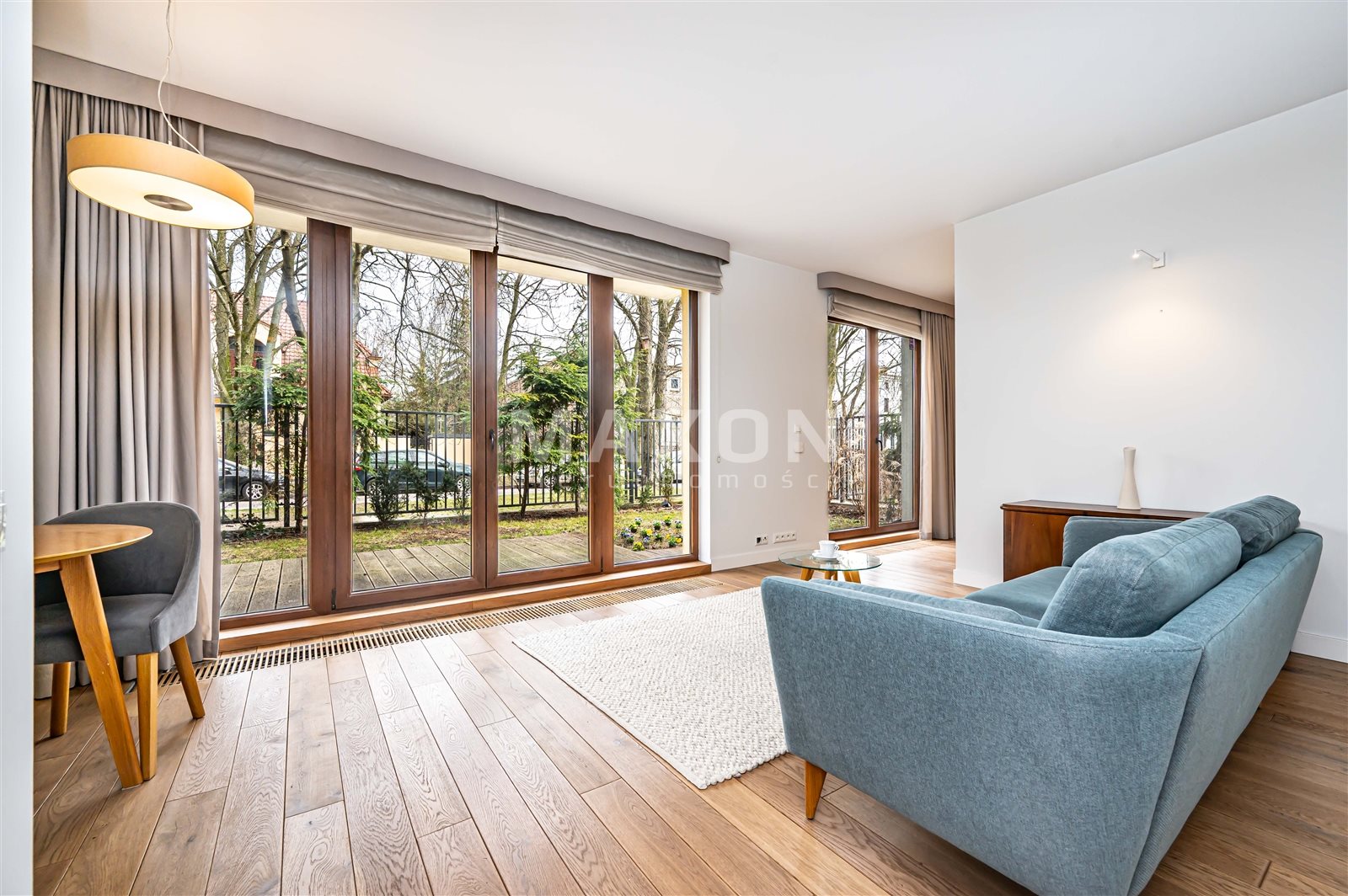A unique, functionally designed 69 m² apartment is available for rent, located in an intimate building in the Włochy neighborhood. The property is situated on a fenced, well-maintained lot with access to a shared patio for residents, ensuring peace and privacy.