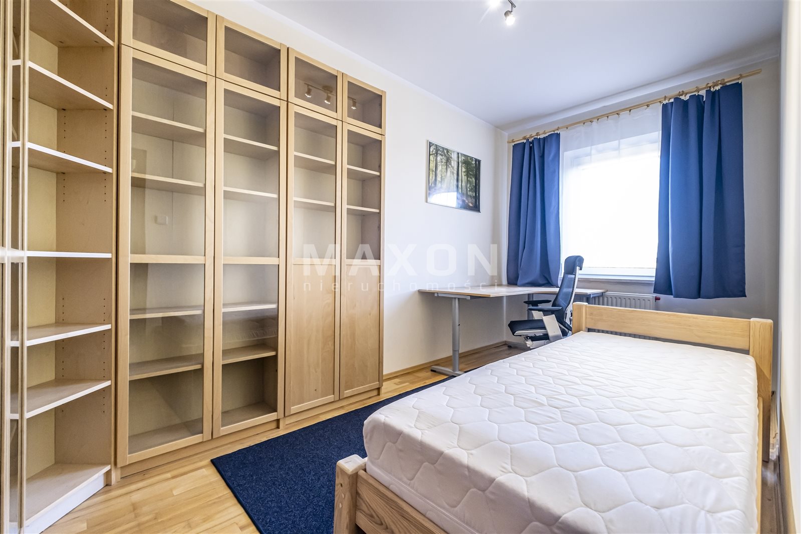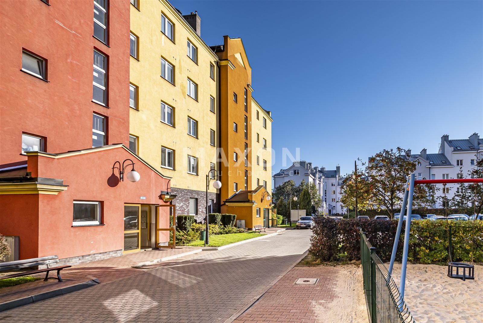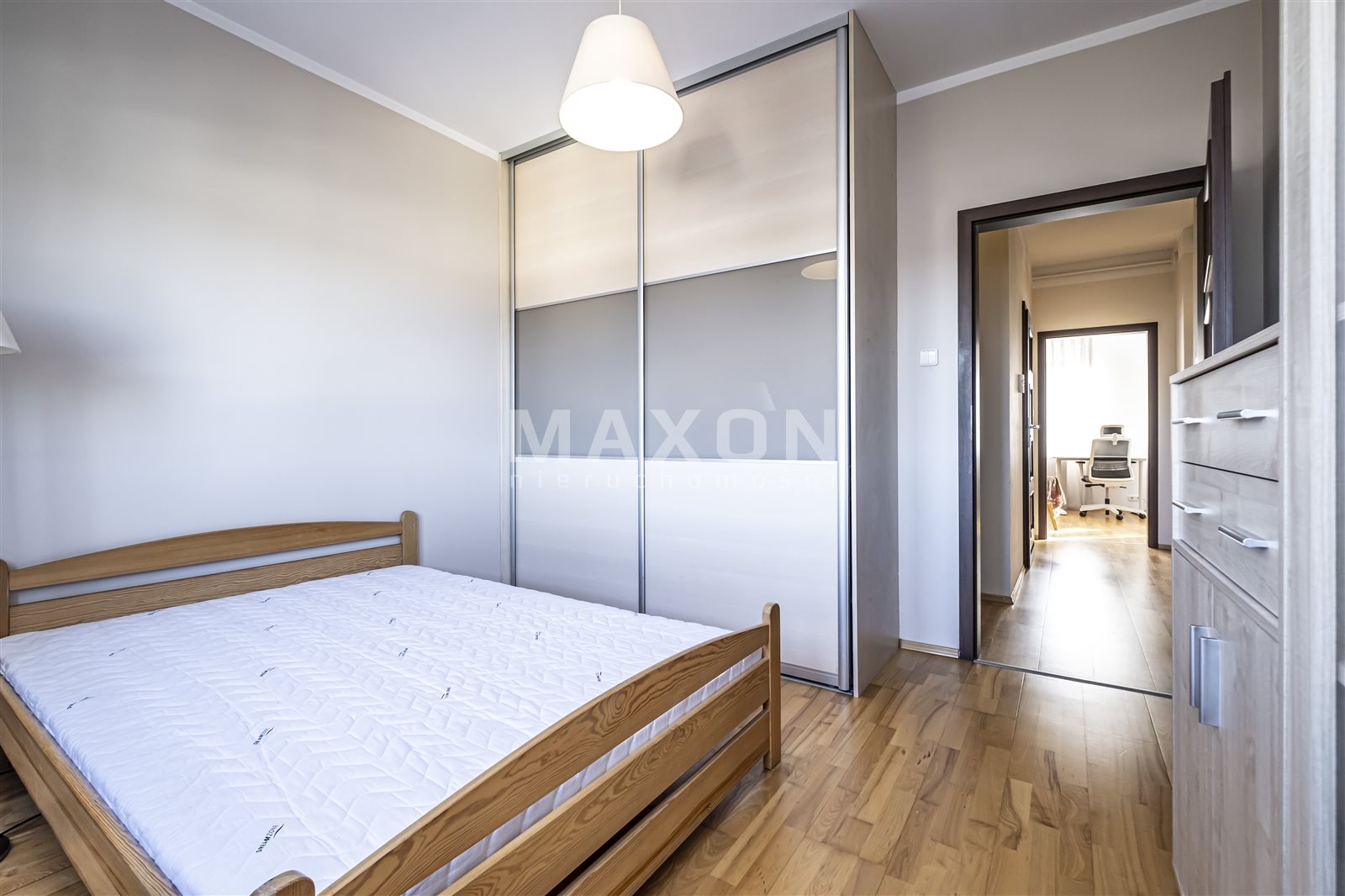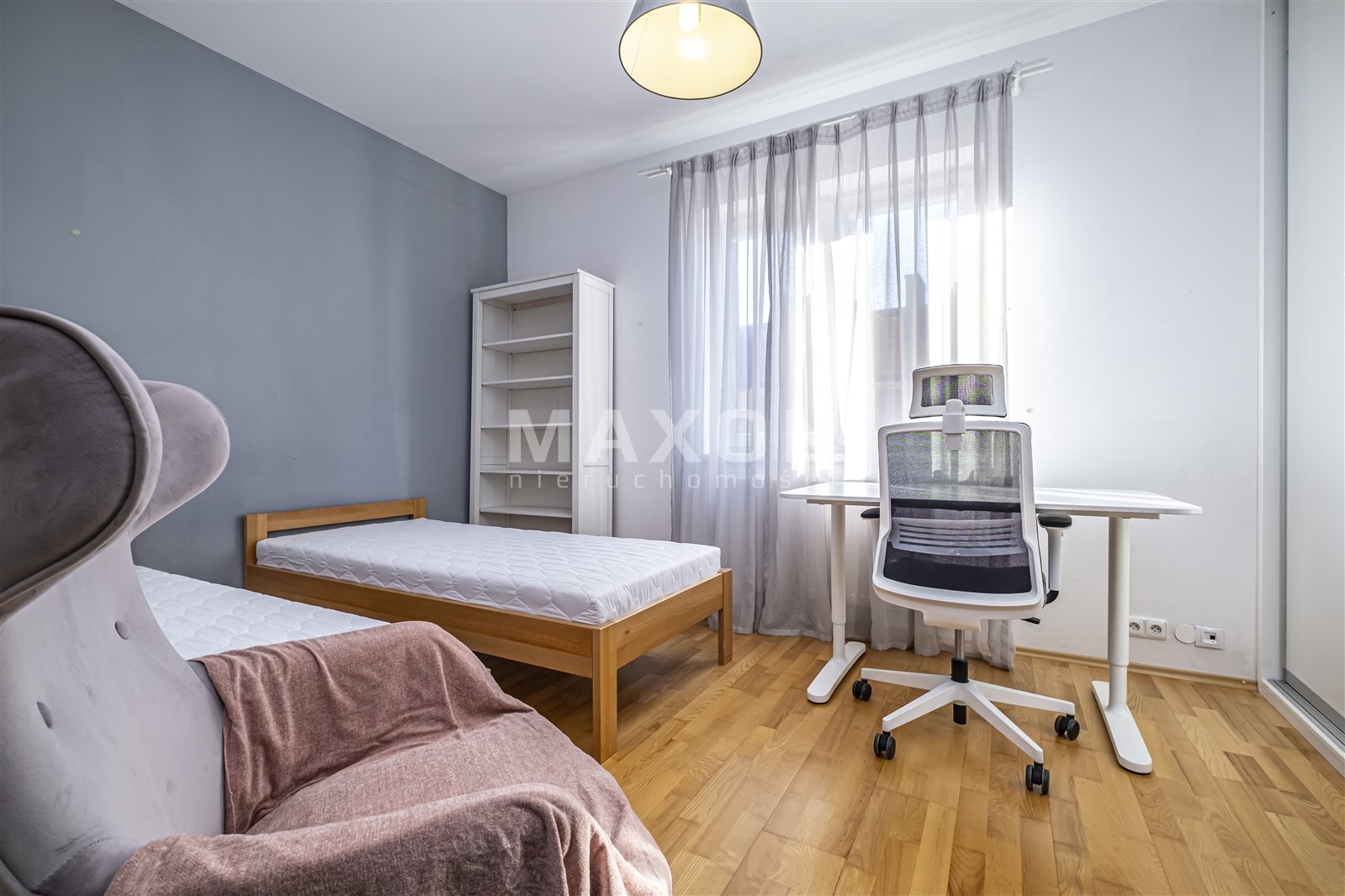 The property for rent is a fully equipped and furnished four-bedroom apartment located in Ząbki at 33D W. Sikorskiego Street. The apartment is located on the fourth floor of a five-story building with an elevator. It is part of a gated, secure community with beautiful, well-maintained green spaces and parking spaces for residents. The apartment has a total area of 90 sq. m., comprising three bedrooms measuring 15 sq. m., 11.5 sq. m., and 11 sq. m., a living room of 24 sq. m., a kitchen of 10.5 sq. m., a hallway of 11.5 sq. m., a bathroom of 5 sq. m., and a toilet of 1.5 sq.The