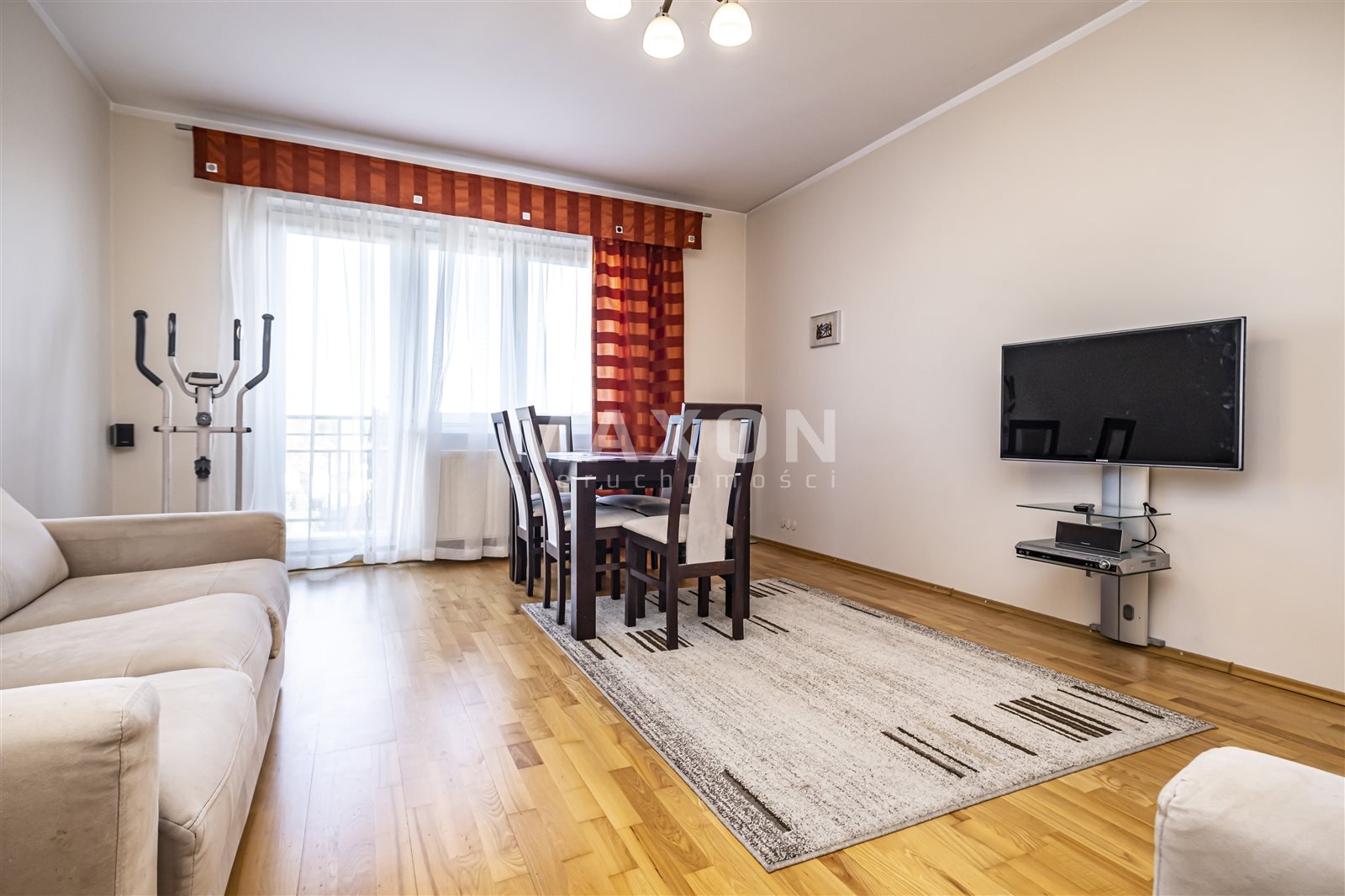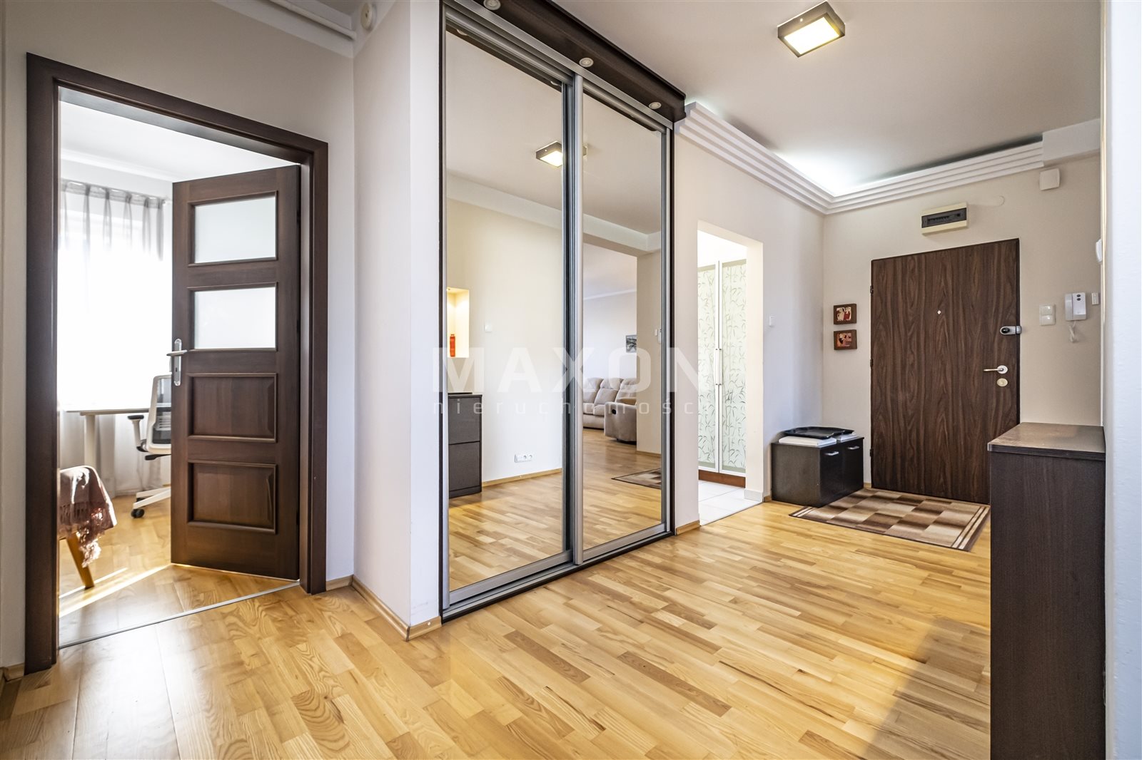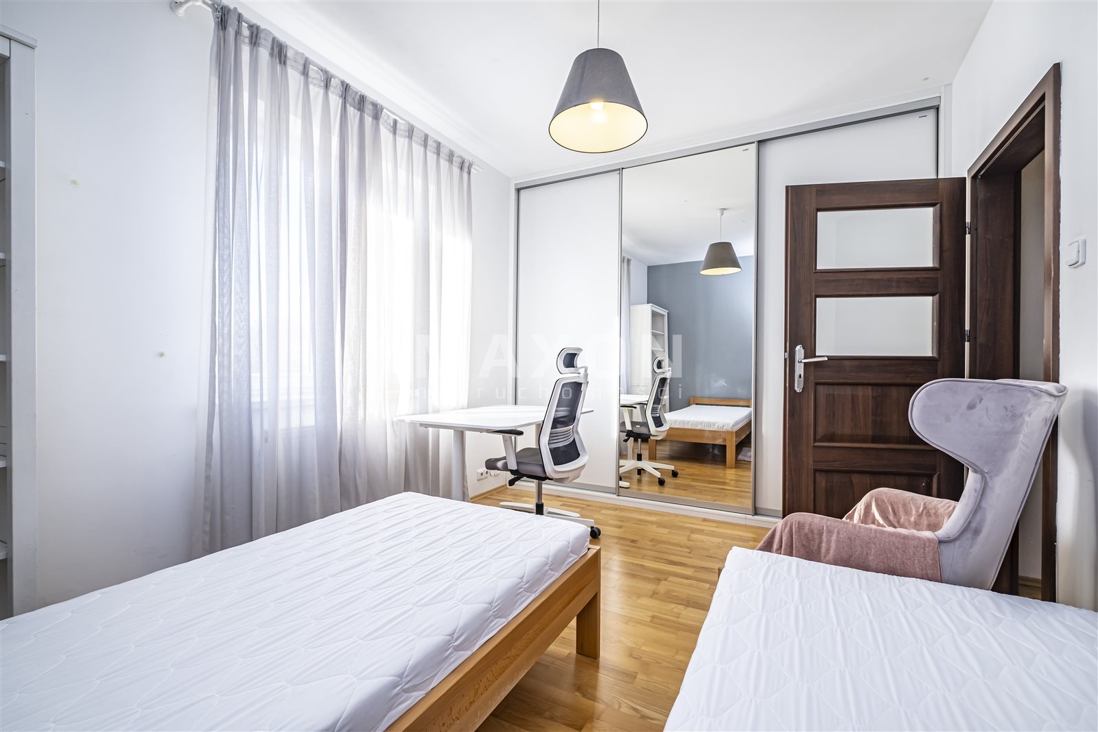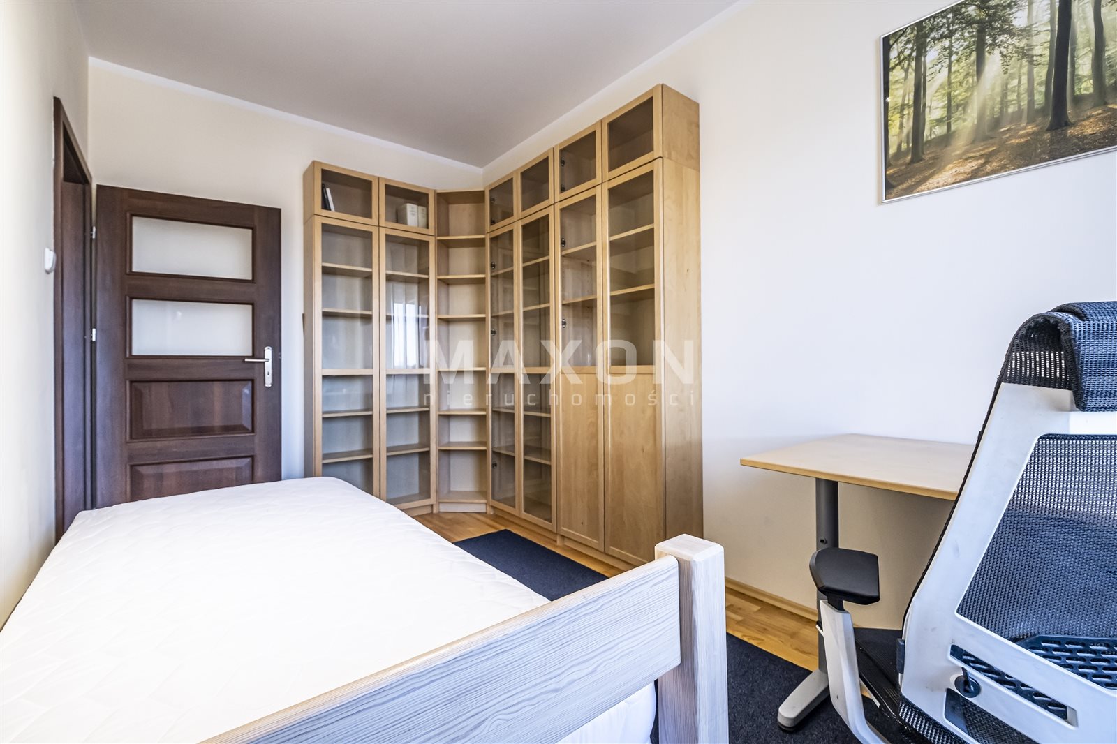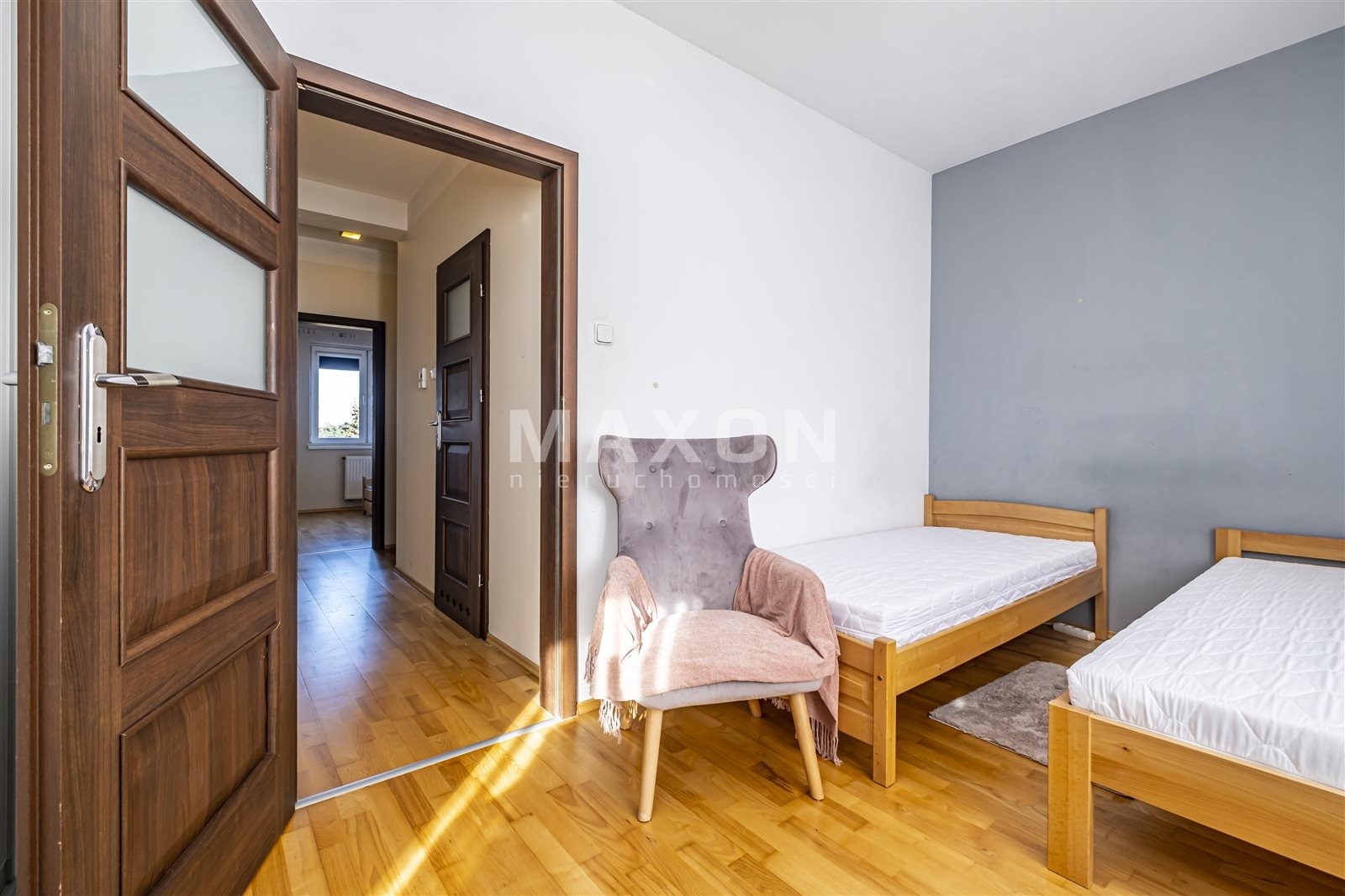 The property for rent is a fully equipped and furnished four-bedroom apartment located in Ząbki at 33D W. Sikorskiego Street. The apartment is located on the fourth floor of a five-story building with an elevator. It is part of a gated, secure community with beautiful, well-maintained green spaces and parking spaces for residents. The apartment has a total area of 90 sq. m., comprising three bedrooms measuring 15 sq. m., 11.5 sq. m., and 11 sq. m., a living room of 24 sq. m., a kitchen of 10.5 sq. m., a hallway of 11.5 sq. m., a bathroom of 5 sq. m., and a toilet of 1.5 sq.The