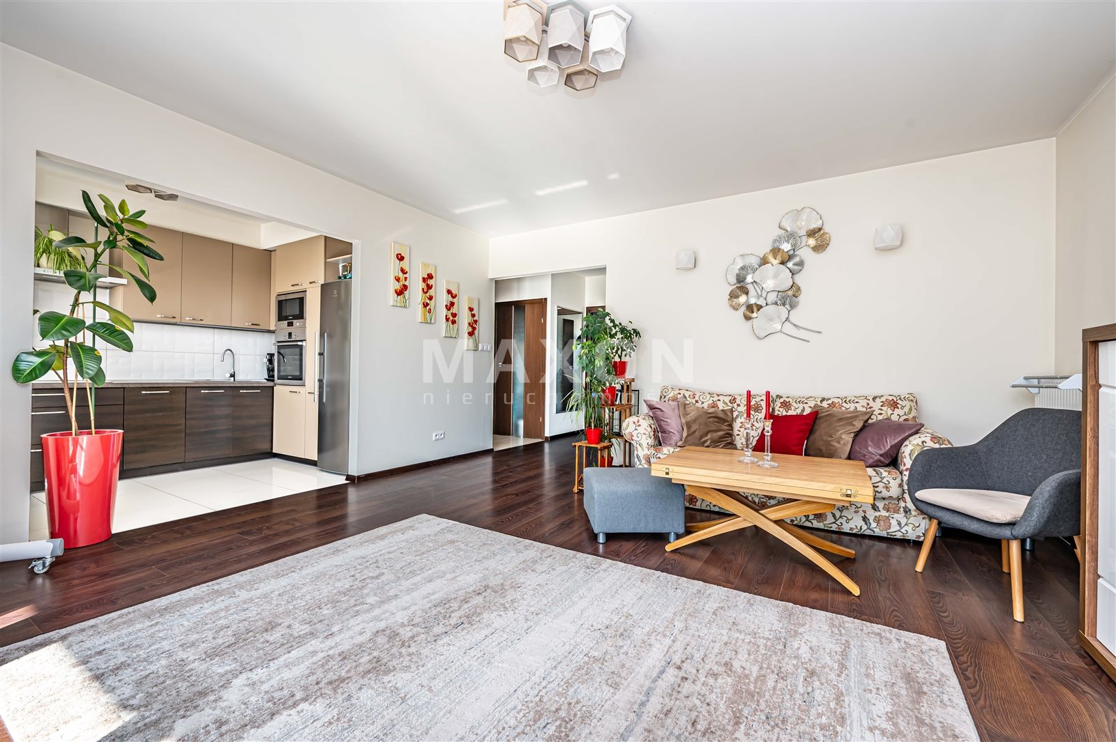 Perfectly lit! Exposure to three sides of the world! Space for your own arrangement! These are just some of the advantages of the apartment located in Pruszków at 7 Maria Street in the closed and guarded Lipowa Ostoja housing estate. In a place that combines the convenience of city life with proximity to greenery and excellent transport links. The WKD Pruszków station is 800 m away, the PKP Pruszków station is 2.2 km away, and it takes just a few minutes to get to the A2 motorway and the POW route.