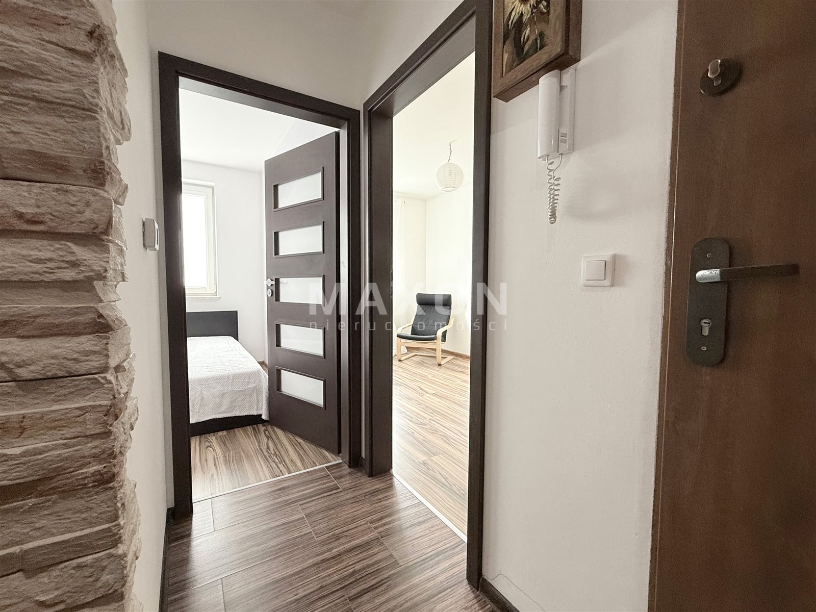 The apartment is bright, with a very functional layout—direct access from the entryway to each room. Single-level. Balcony overlooking the housing estate and a playground within a gated area. Quiet and sunny—west-facing.