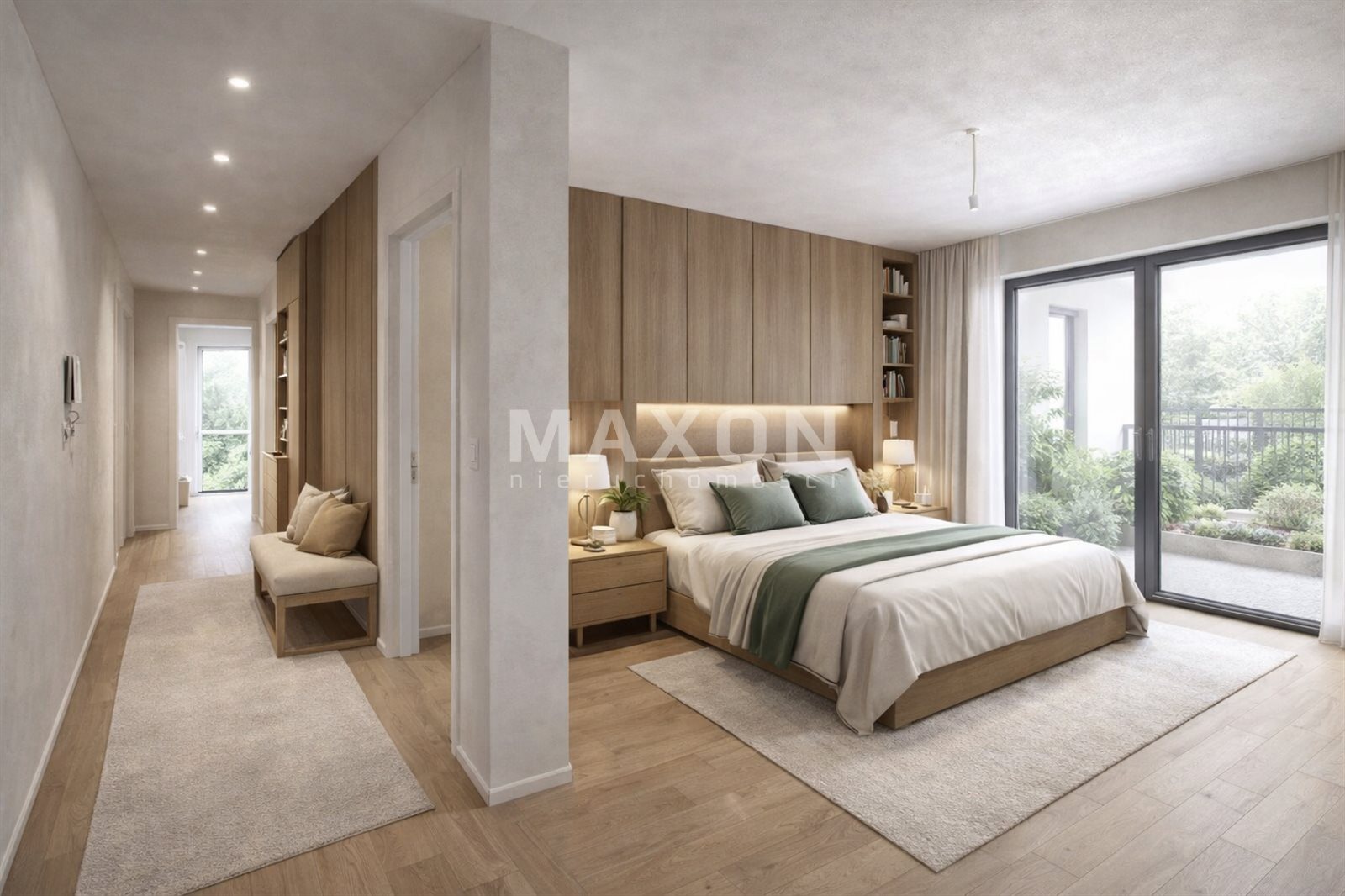 Two separate bedrooms on opposite sides of the apartment (one with access to the garden)