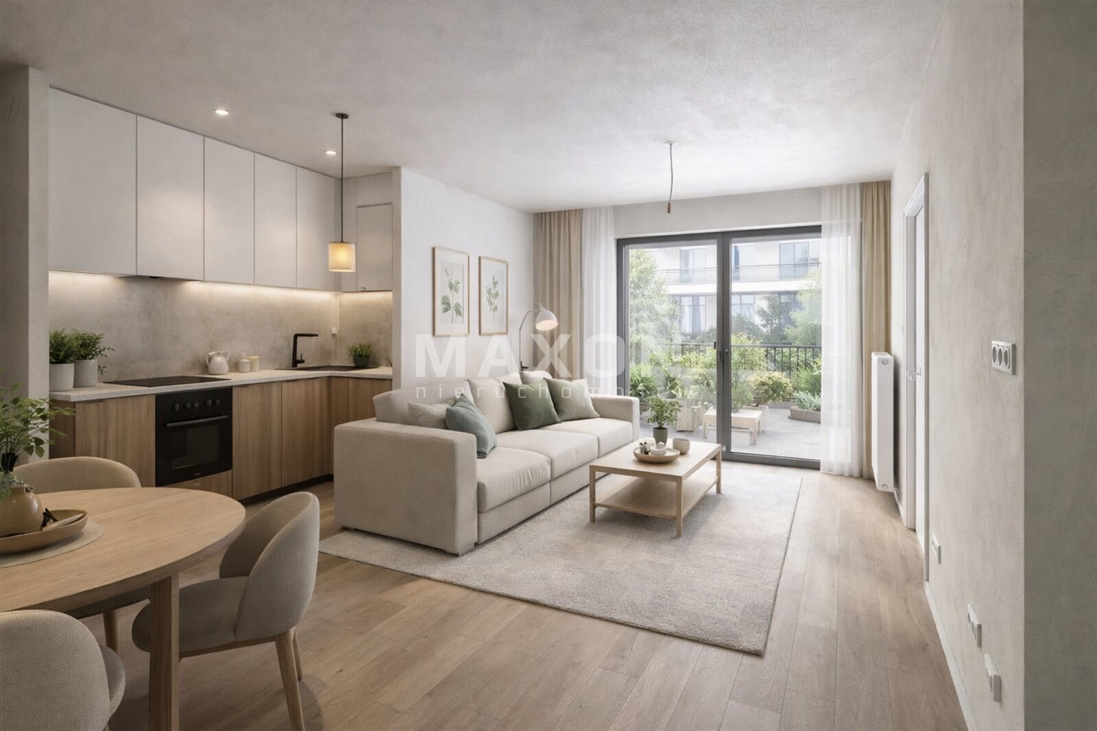 A 3-room apartment of 61 sq m with a private garden of approx. 60 sq m in Dawidy Bankowe and a balcony of 6.7 sq m is for sale — just 5 minutes from Ursynów.