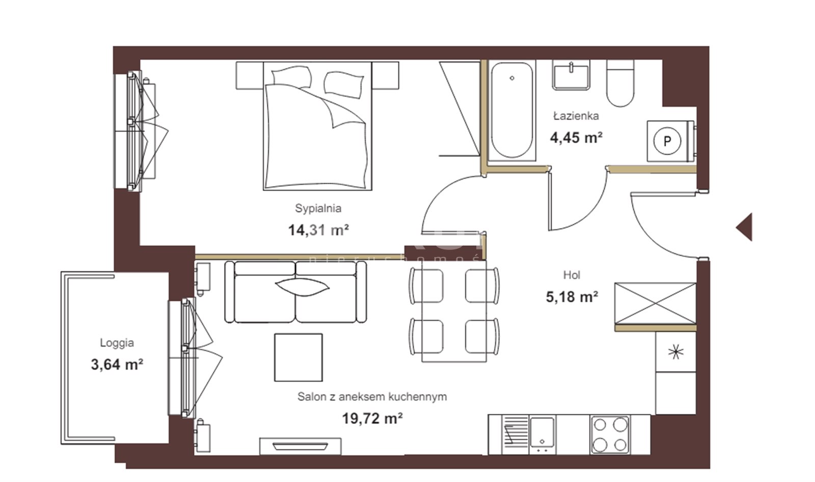- Living room with kitchenette and open hall (24.90)