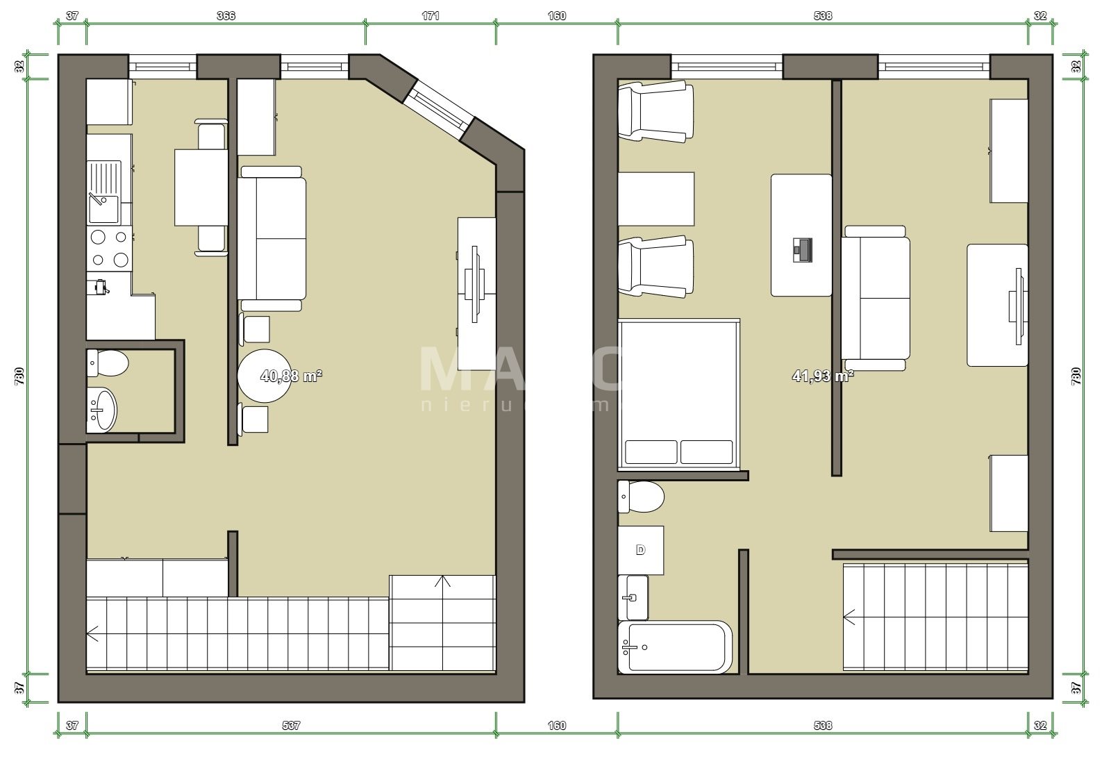 apartment - functional room layout - possibility of separating the living
