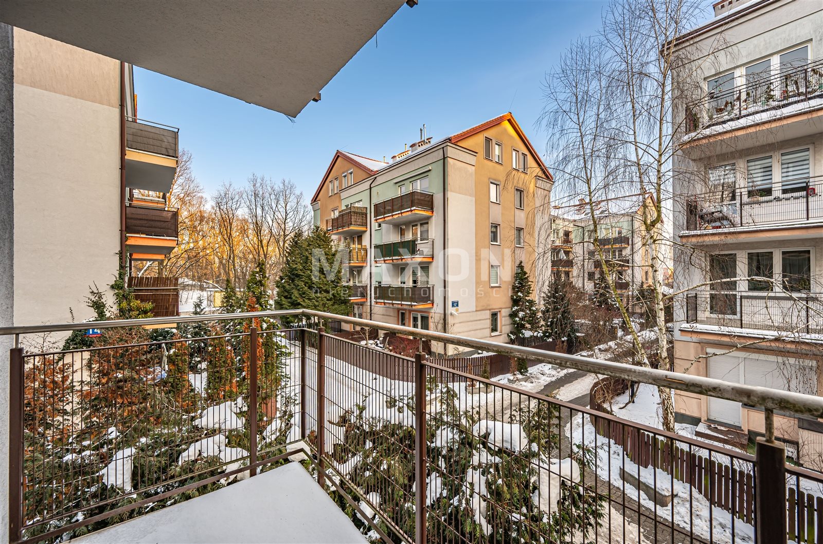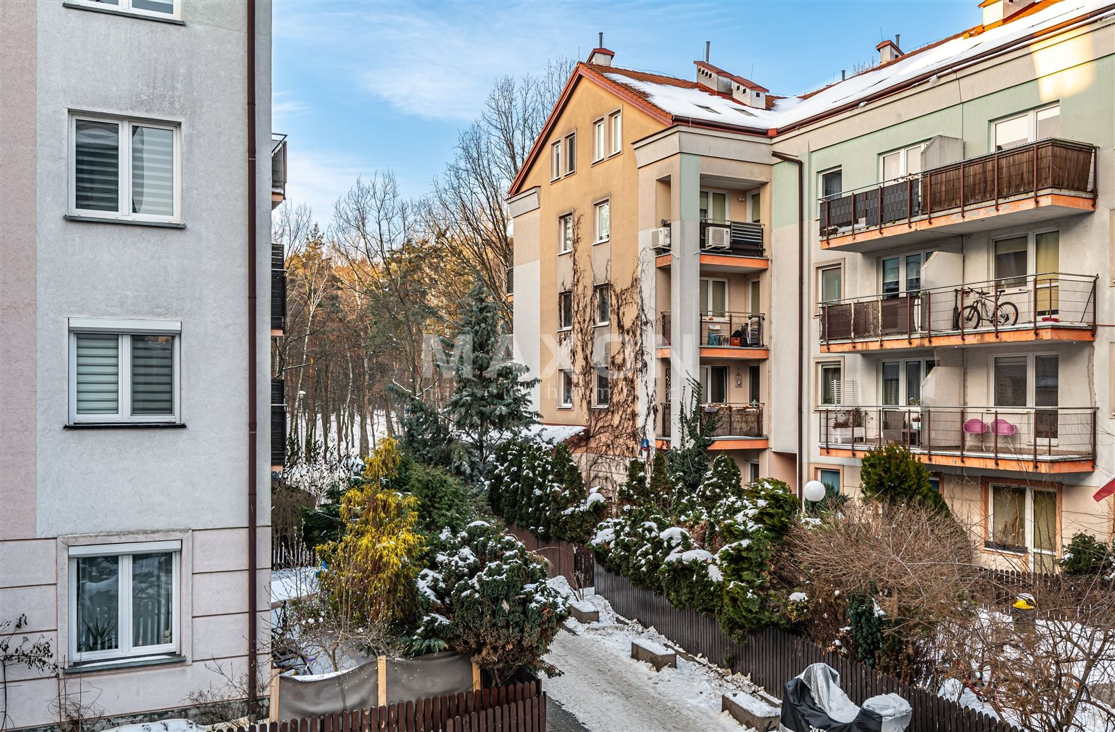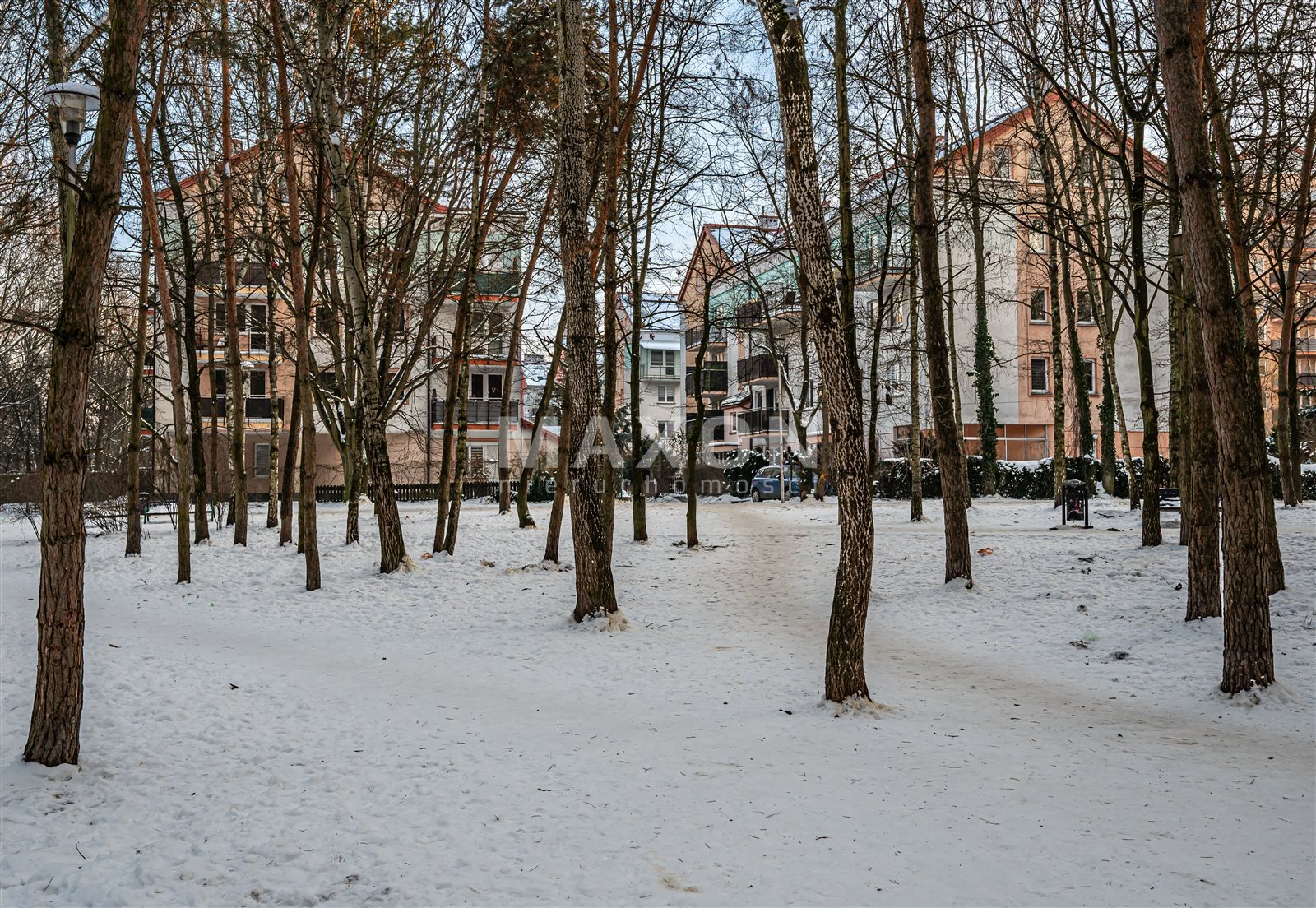 The building is located in a cozy neighborhood with lots of greenery, adjacent to a beautiful forest park with recreational facilities.