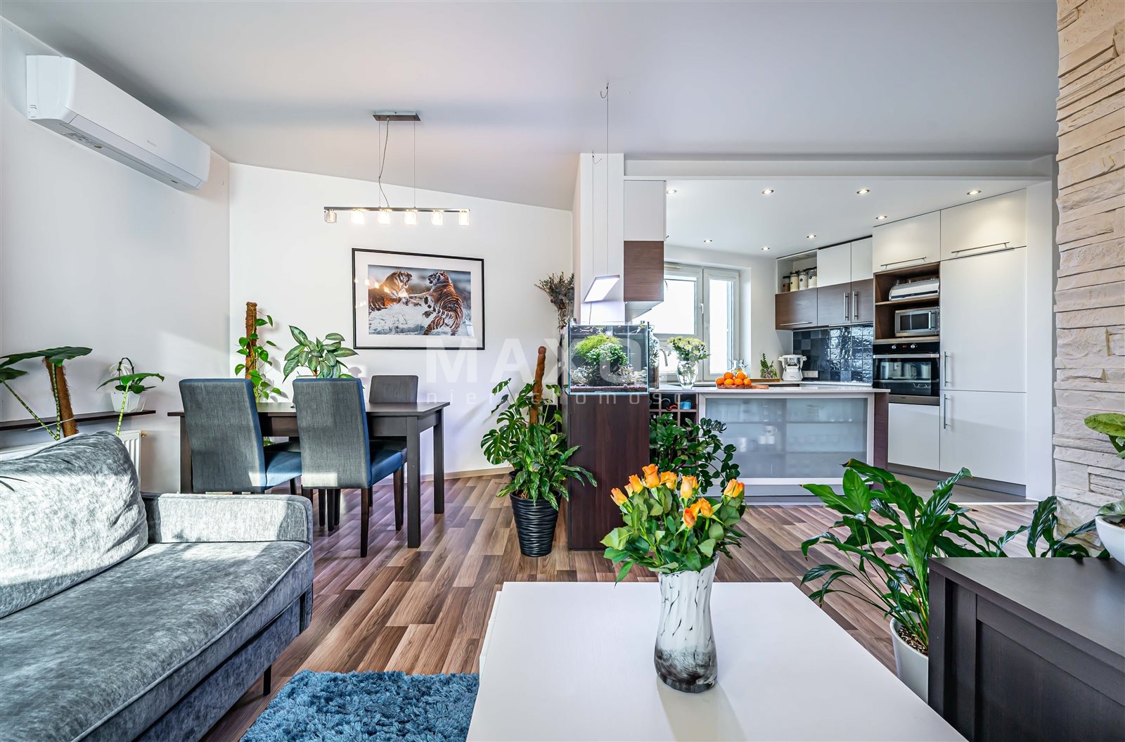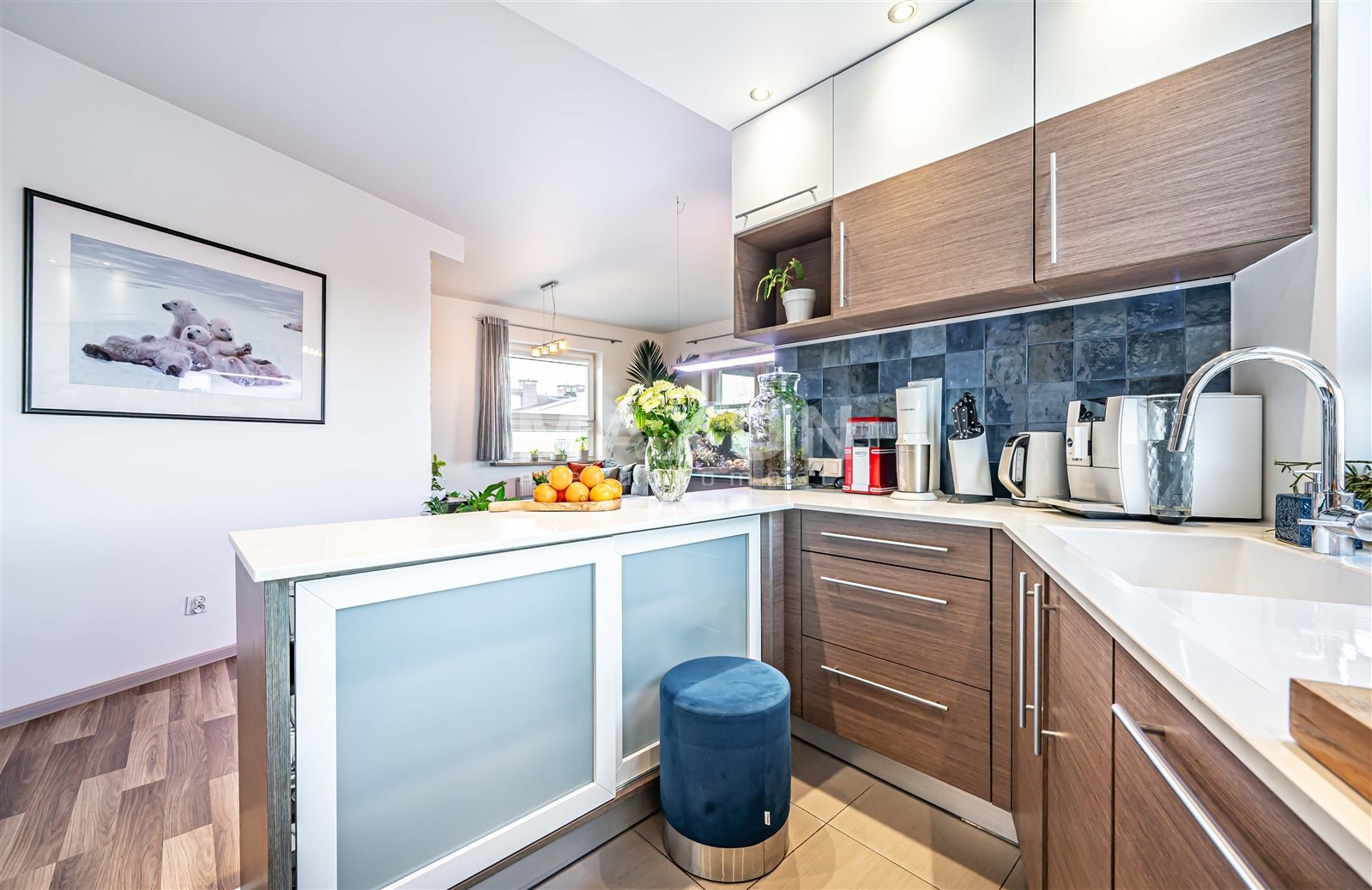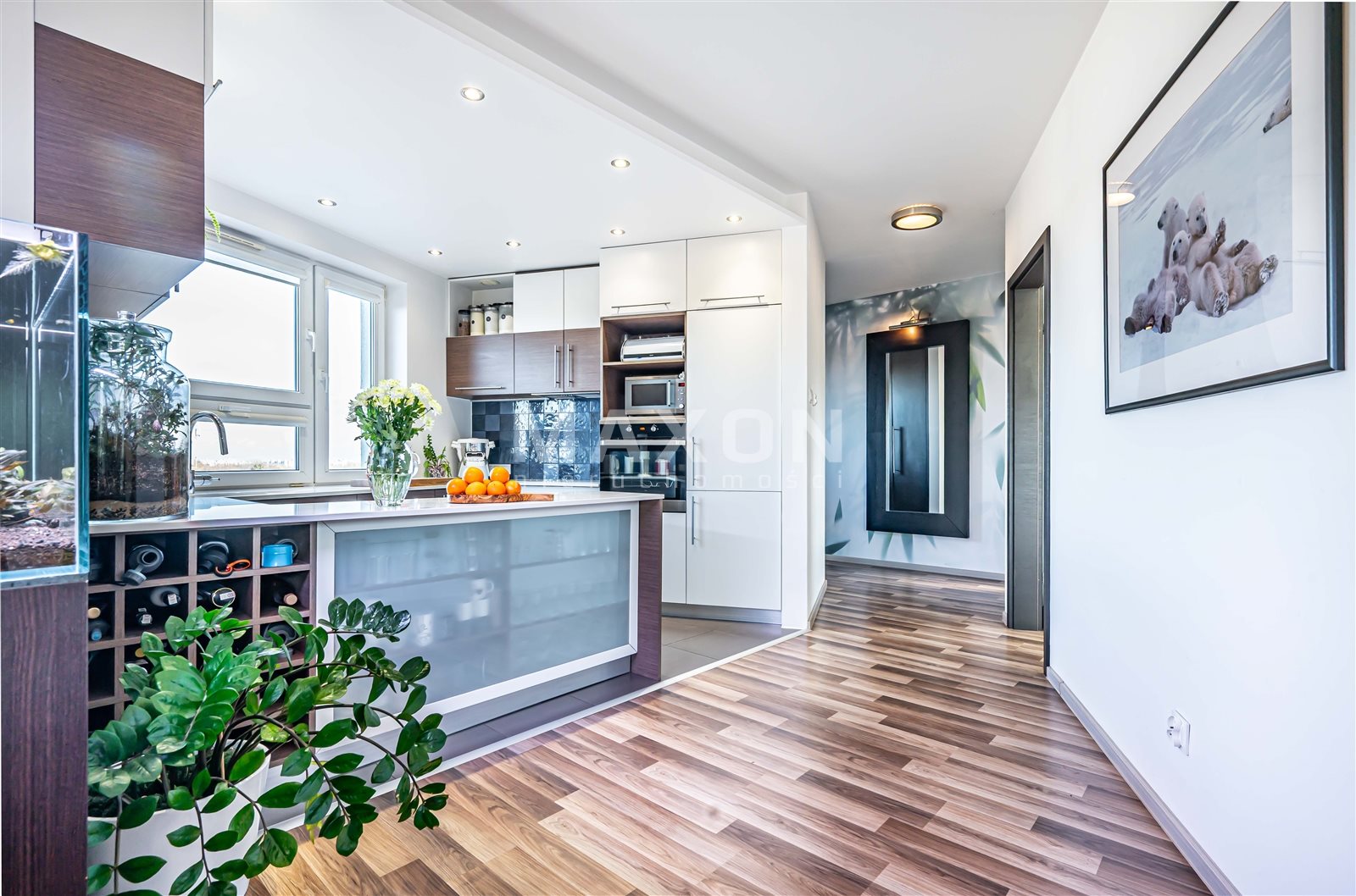 Finished in good style - comfort, space and convenience. An ideal apartment for a couple or a family with a phenomenal view from the terrace on the top floor of the building. Noteworthy is the spacious living room with a relaxation area, terrace and dining room connected to the spacious kitchen.