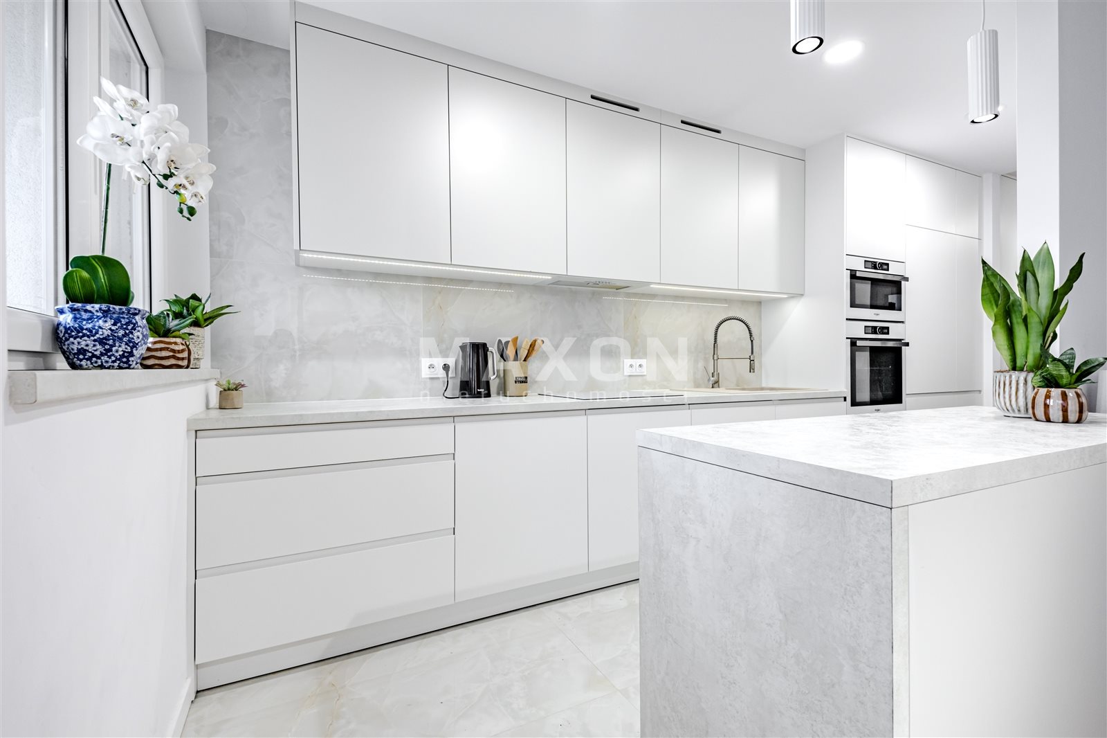 If you value quality, attention to detail, and design, you'll feel comfortable from the very first moment you step into this apartment. A spacious living room with balcony access, a large fitted kitchen, and an elegant bathroom with custom-made furniture create a comfortable atmosphere. The bathroom and kitchen are finished with beautiful stone. The floors throughout the apartment, except for the bathroom and kitchen, are beautiful, high-quality oak flooring. The kitchen is equipped with high-quality appliances, and the bedroom has a large built-in wardrobe.