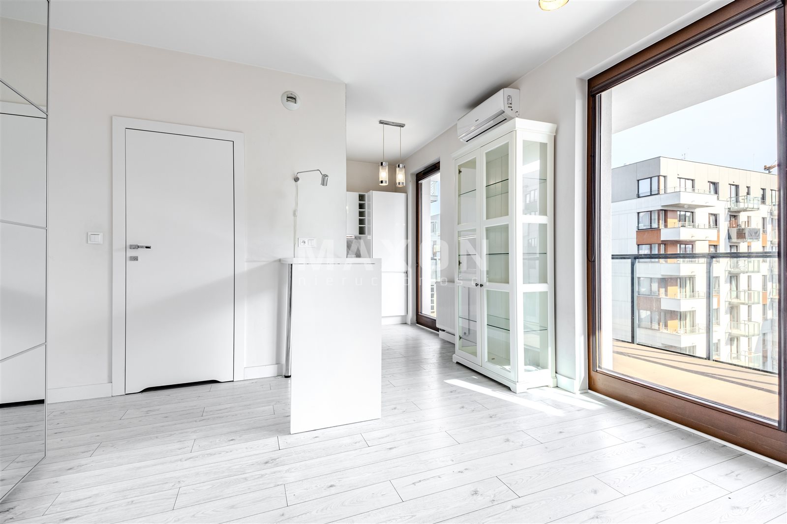 A cozy and easy-to-arrange 33 sq m studio apartment for sale, located on Cybernetyki Street, in the second line of buildings, in the heart of the business district of Mokotów. Just an 8-minute walk to Galeria Mokotów. The premises are located on the 5th floor of a six-story building with an elevator – in a closed, monitored housing estate. It is an excellent proposition for people who value comfort, safety, and a quiet, green neighborhood with easy access to urban infrastructure. The property requires refurbishment.