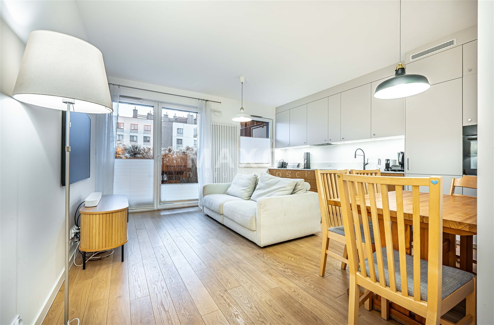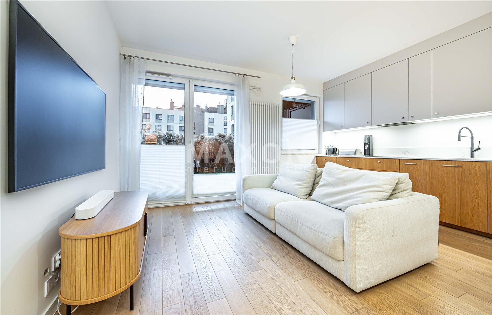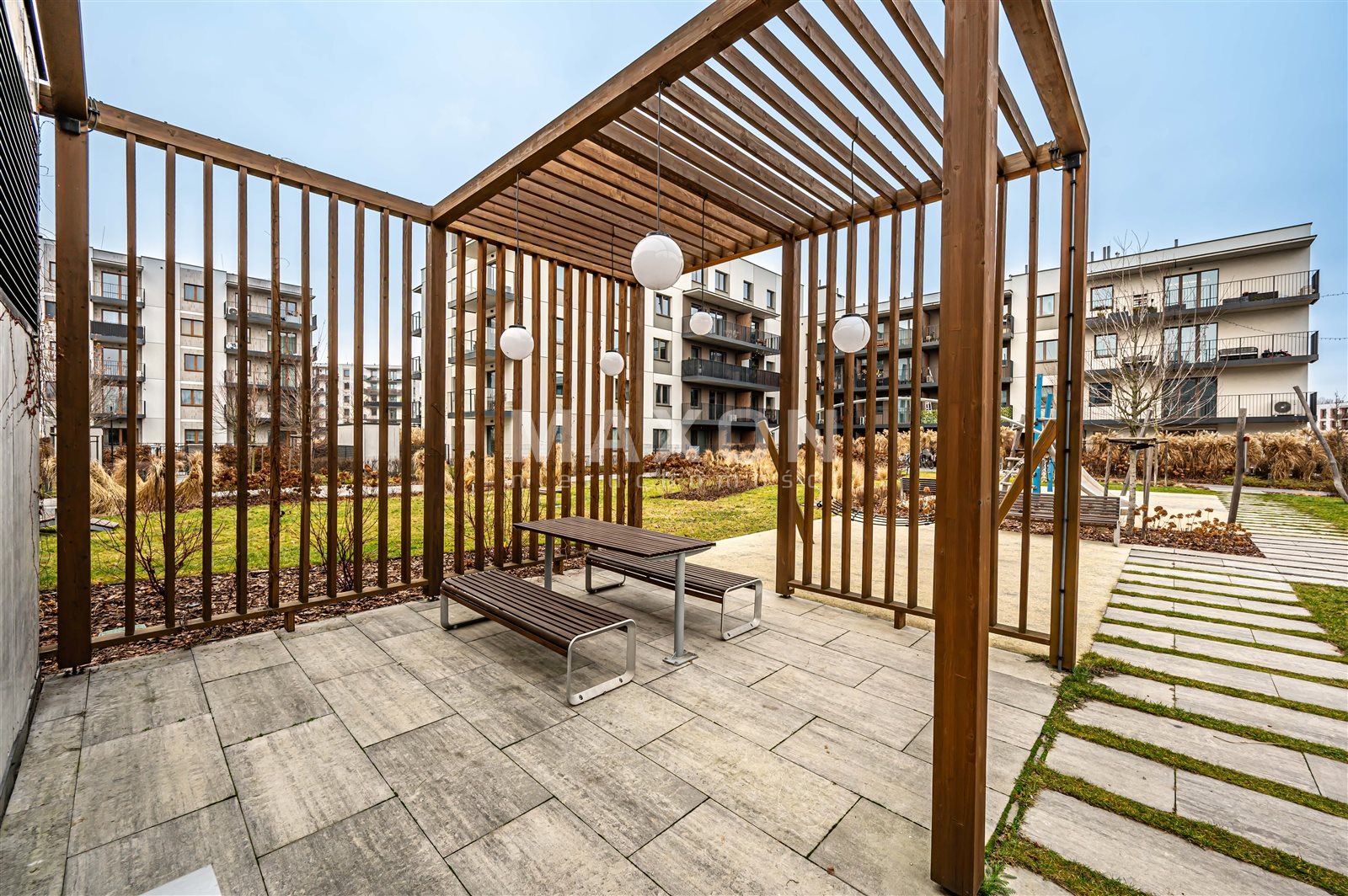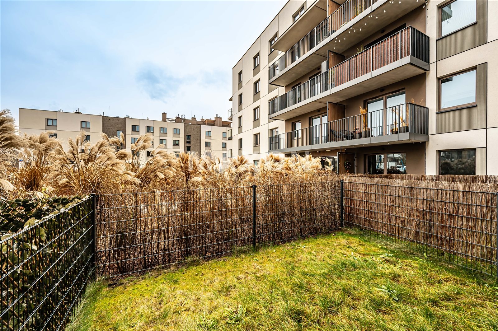 From the living room there is an exit to a terrace of 8.00 m² and to an intimate, fenced garden (17.46 m²), which provides privacy and contact with nature. The interior is finished in a modern, elegant style. The kitchen has built-in appliances with an induction cooktop, and the bathroom has been fitted with a shower cubicle. The floors are laid with high-quality terracotta and parquet flooring.
