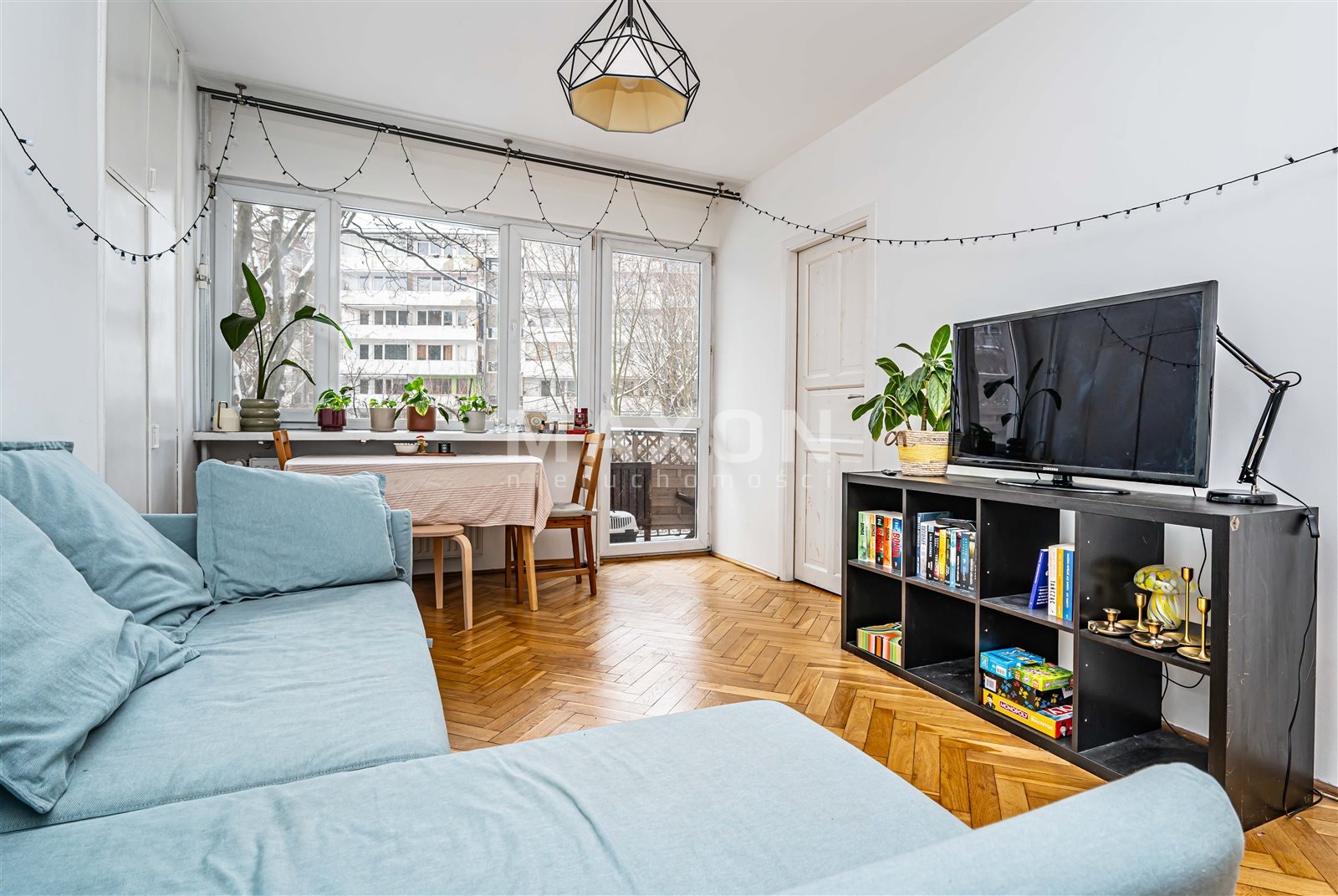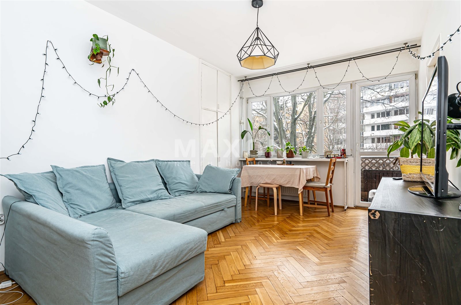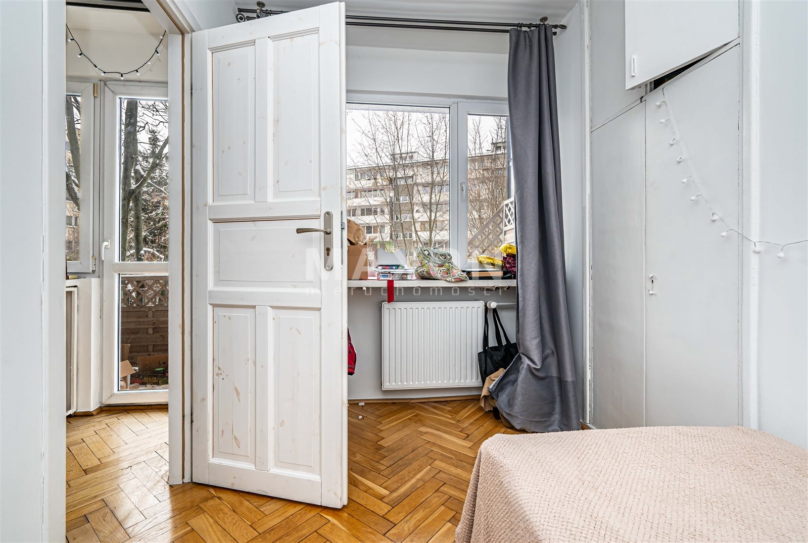 The apartment has an area of approx. 50 sq m and consists of 3 rooms (living room and two bedrooms), a separate kitchen, bathroom, and separate toilet. The apartment has a large balcony running along the entire length of the apartment, overlooking a green, peaceful courtyard.