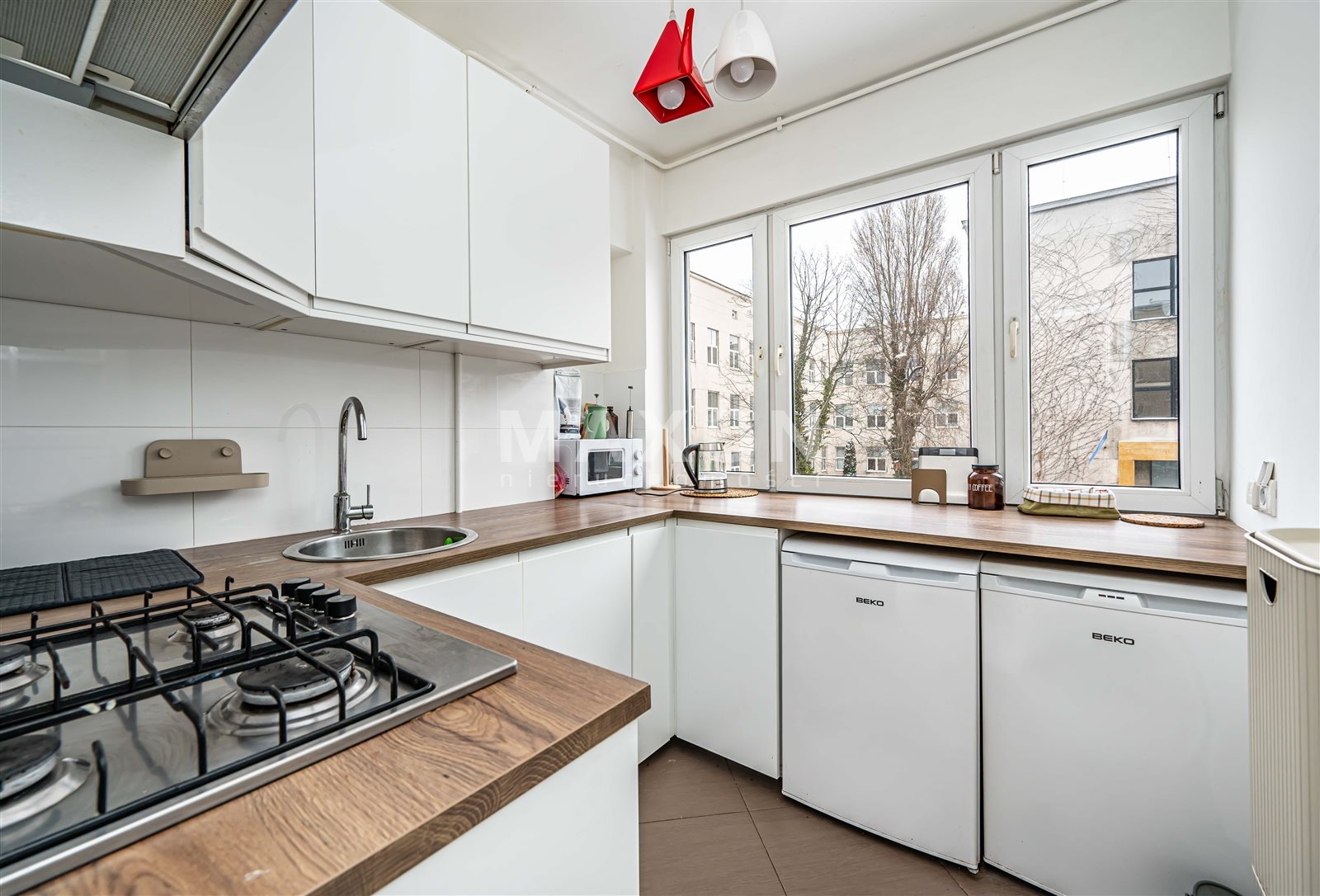 A few years ago, the apartment underwent a complete renovation – the installations, electrical system, windows, and doors were replaced. The original oak floorboards were preserved, giving the interior character.