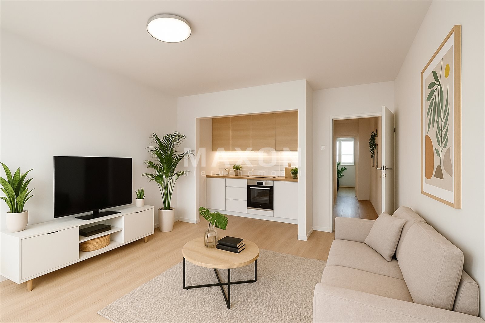 - Living room with kitchenette: 21 m² (with access to the balcony)