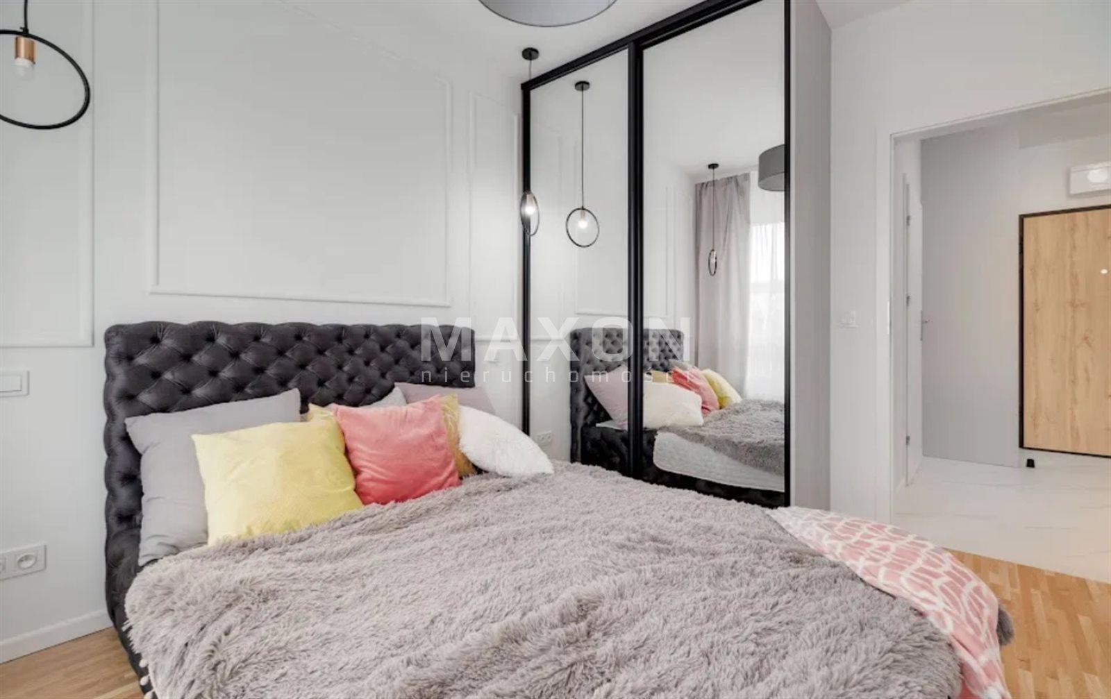 - a bedroom with a large bed and a spacious wardrobe,