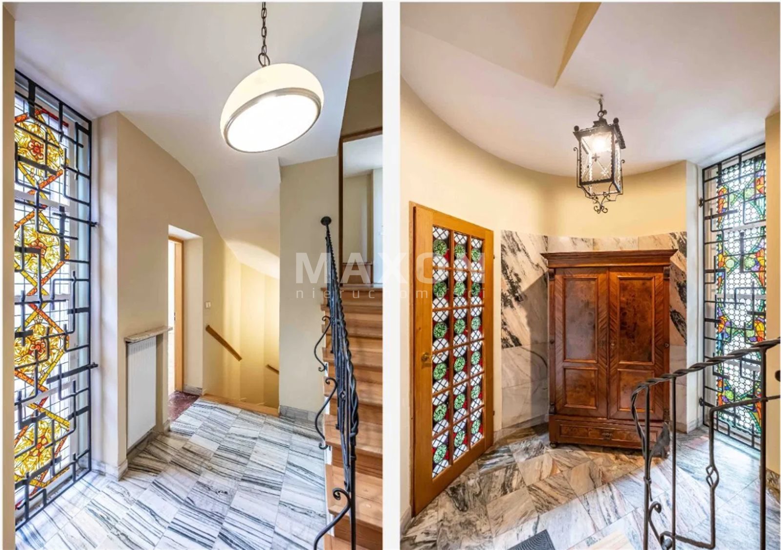 A staircase lined with beautiful "Marianna" marble from Polish exhausted deposits leads to each level. There are stained glass windows in many of the windows. One of the rooms is decorated with an antique stove built of Meissen tiles from the 19th century.