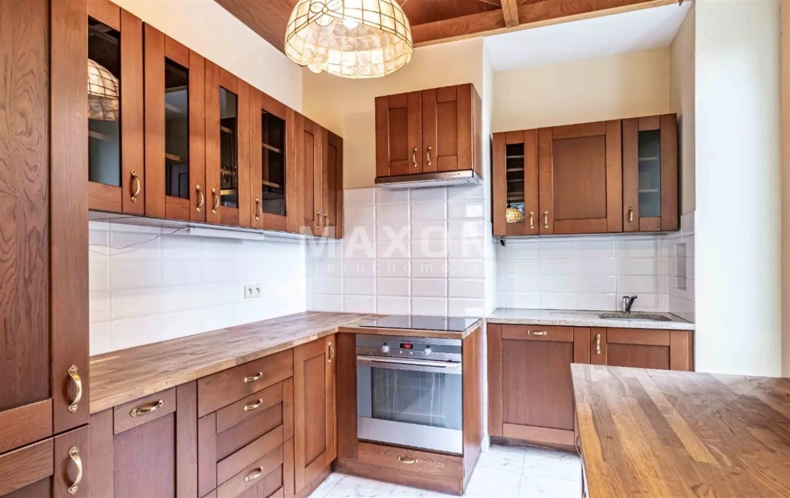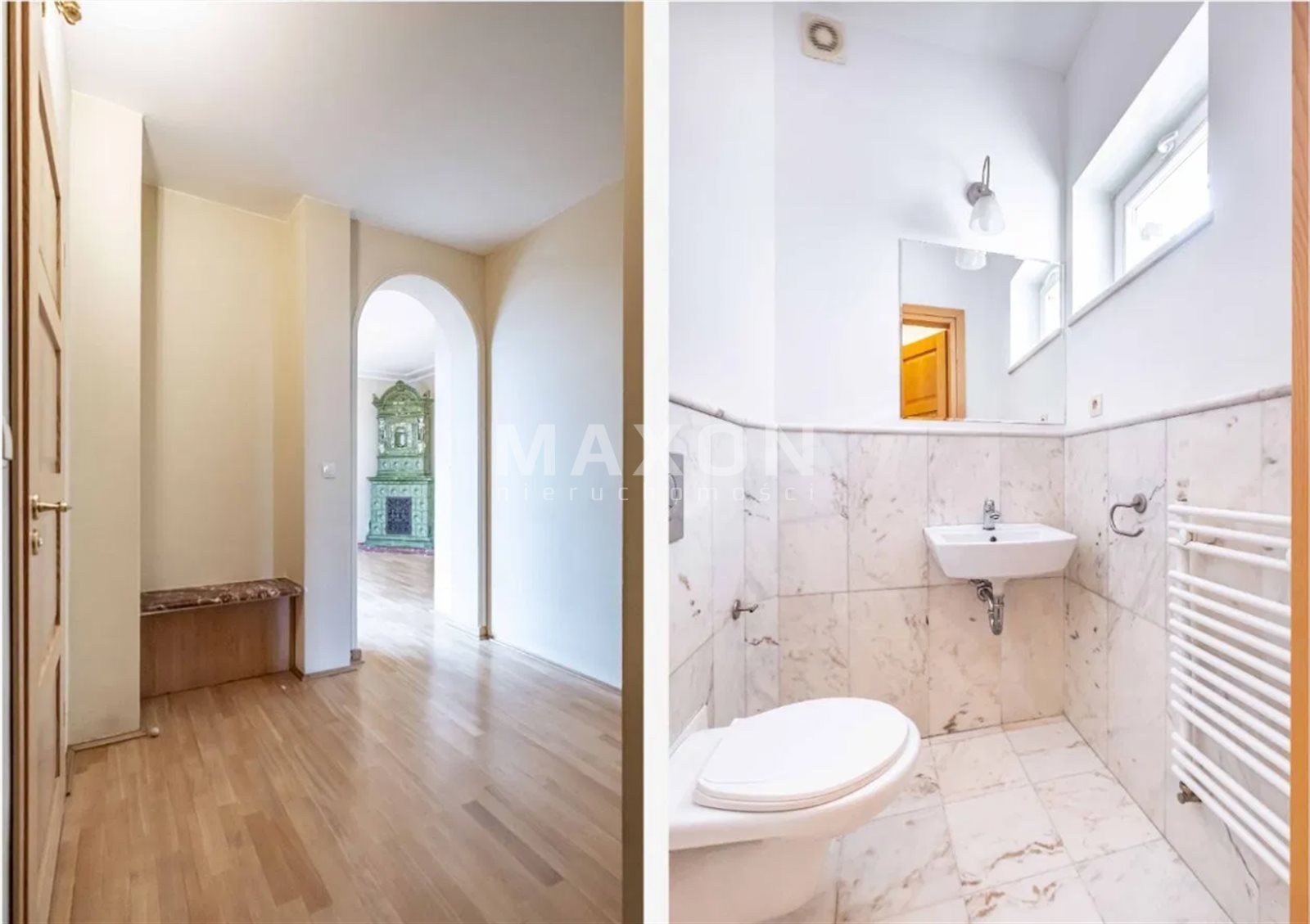 The apartment offered for sale is located on 4 levels - 2.5 floors. It has 6 rooms, a kitchen, 2 bathrooms, 1 toilet and cellars.