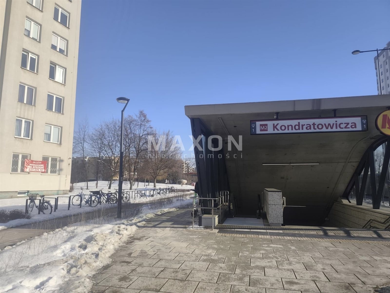 Corner of Malborska and Kondratowicza. Next to the entrance to the Kondratowicza Metro. To the Targówek District Office 120m. Bródnowski hospital 450m. Elementary school 300m.