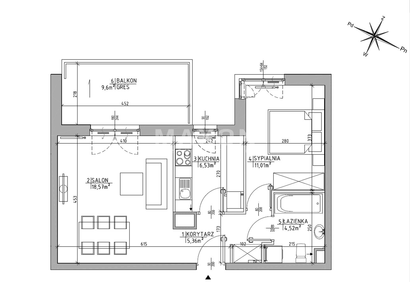 The well-thought-out layout ensures comfort for couples, singles, and remote workers alike. The large loggia is an additional, fully-fledged space – ideal for relaxation, morning coffee, or summer evenings.
