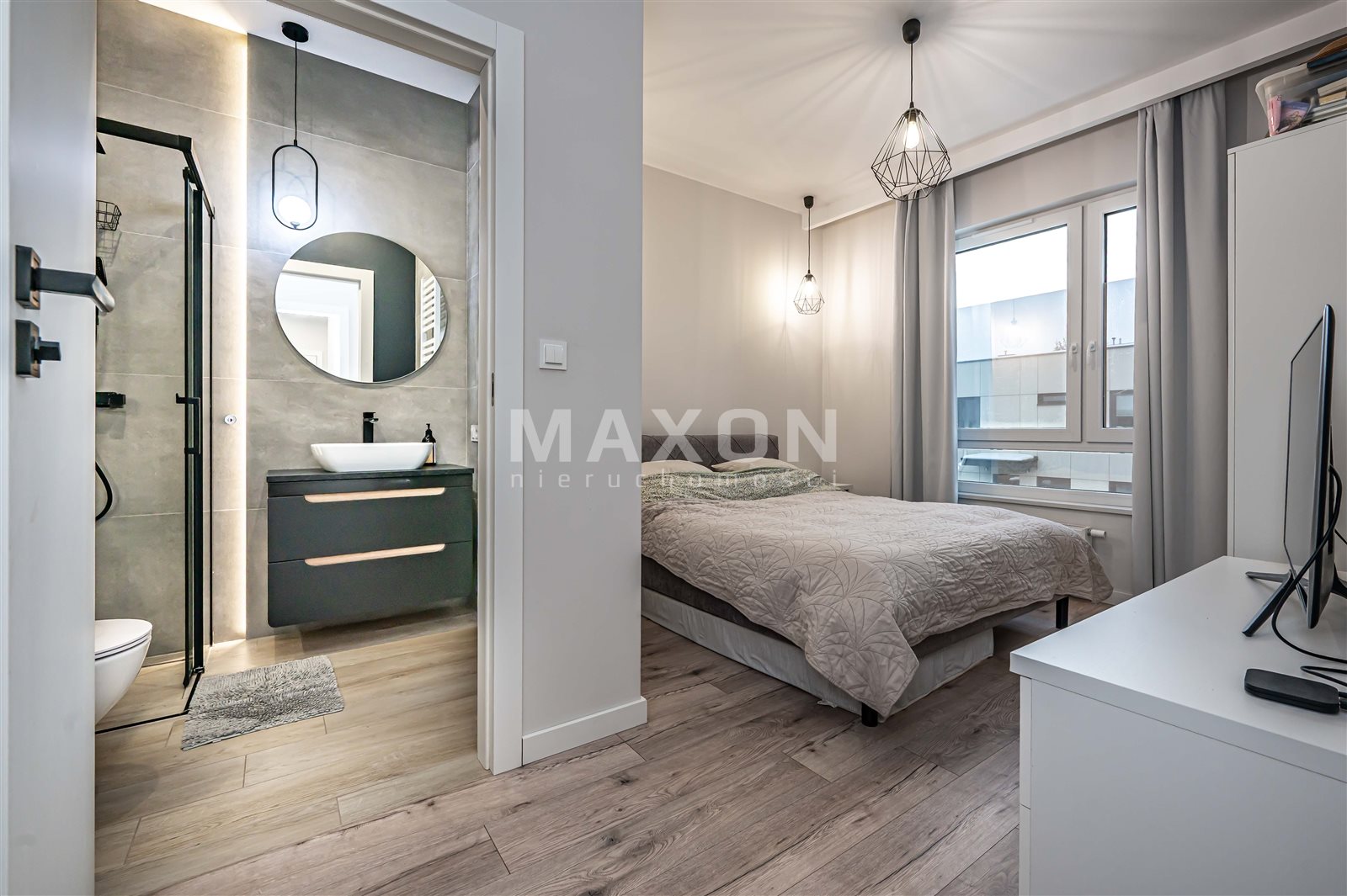 The spacious living room with large windows provides excellent interior lighting and is an ideal space for relaxation and meetings with loved ones. The kitchenette blends harmoniously with the living area, creating a comfortable, modern living space. The balcony is an additional place for morning coffee or a moment of rest after work. The functional layout includes two bathrooms and a separate toilet – a solution that significantly increases the comfort of everyday use.