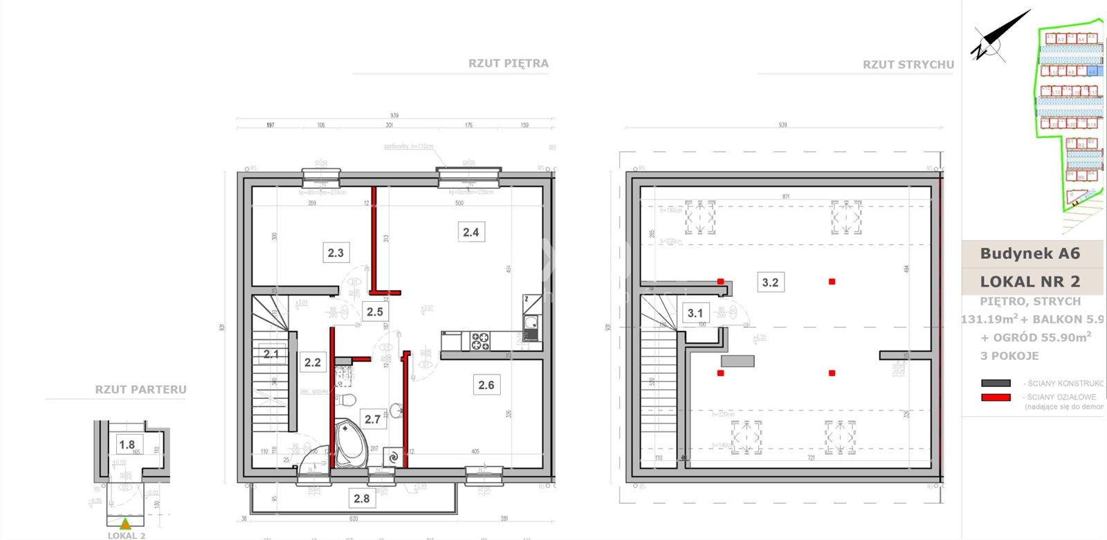 • open space for any arrangement (62.76m) (without slants about 45m). There are led interior stairs to the attic.