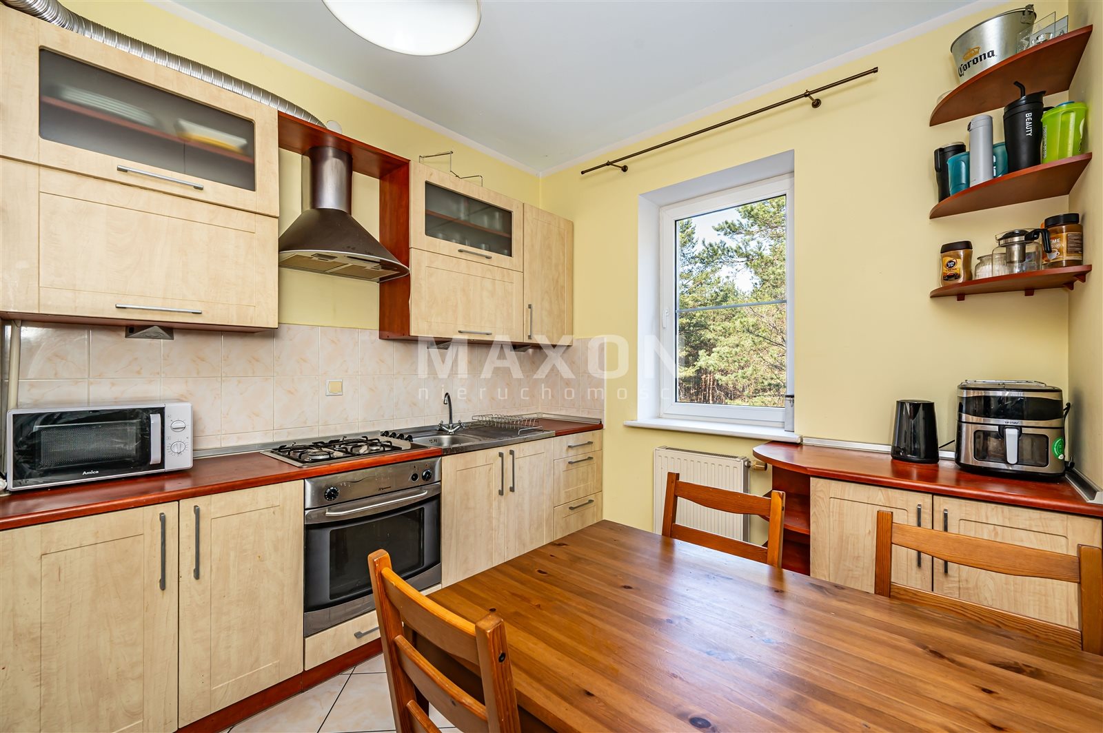 The kitchen and bedroom offer a beautiful view directly onto the forest, ensuring peace, privacy, and a connection with nature.