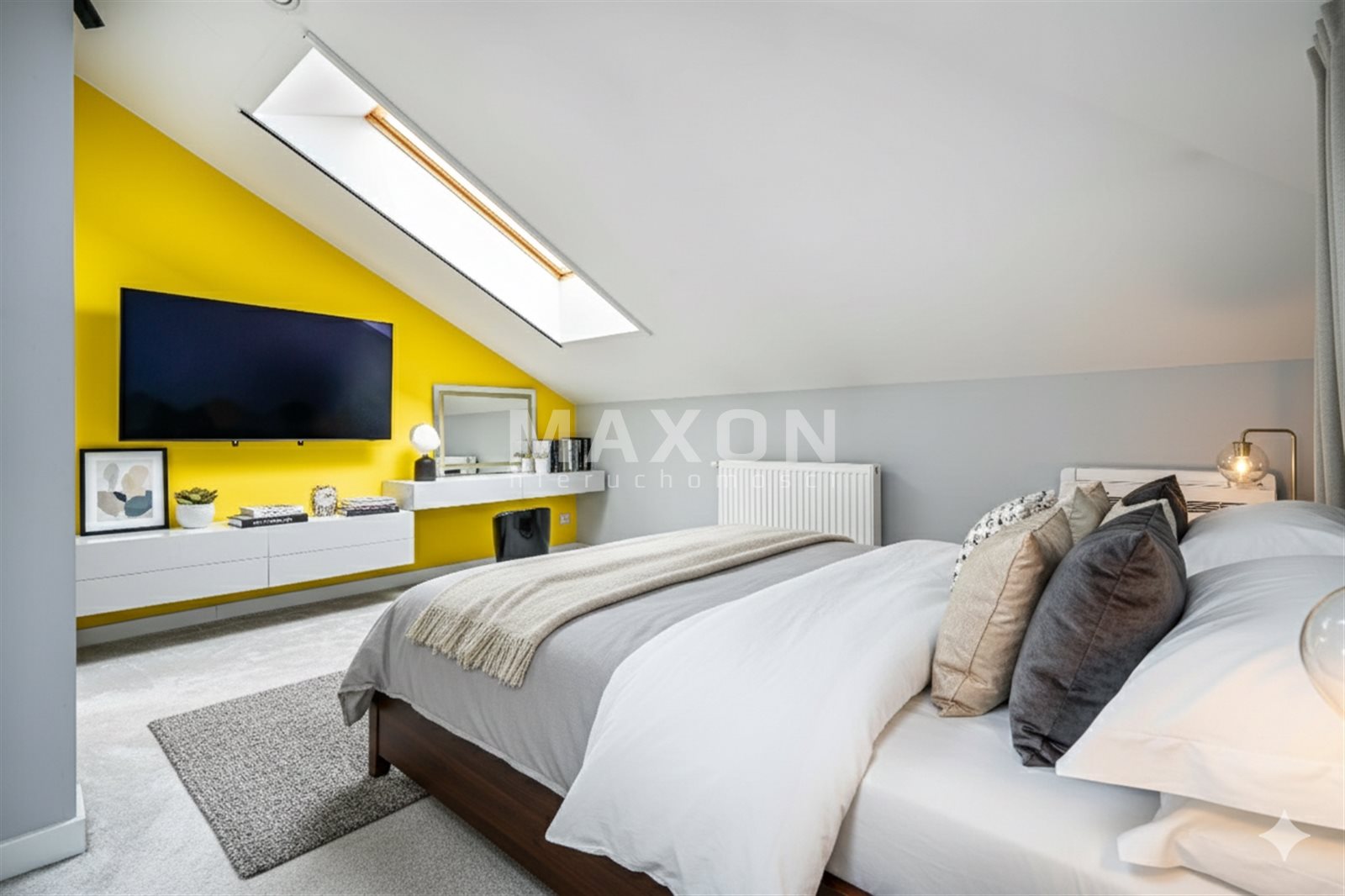 The subject of the sale is an end apartment in a 2016 segment with a total area of approx. 149 sq m. According to the land and mortgage register, the area is 74.82 sq m, while the second level is an attic, which is not included in the land and mortgage register. The property is located in a quiet part of Marek. It has two functional levels and a garden with an area of approx. 60 sq m, ideal for relaxation and meetings with family or friends. Room layout: Level 1: vestibule, utility room, bathroom with toilet and shower, spacious living room with dining area and kitchenette.